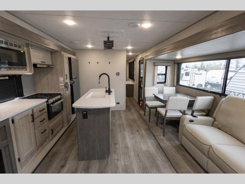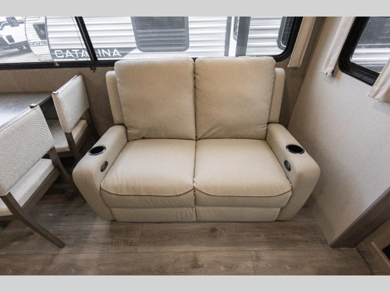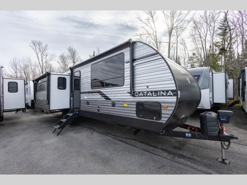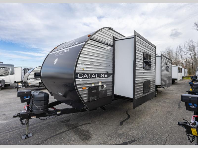 Each Catalina Legacy travel trailer by Coachmen is constructed with a cambered structural steel I-beam frame for added strength and support, plus an enclosed and fully sealed corrugated underbelly to extend your camping season. There is also a seamless Alpha roof membrane, R-7 insulation throughout, full length frame outriggers, plus many more durable construction materials. You will love the 6' 9" interior height, along with Congoleum woodplank linoleum flooring, solid surface kitchen countertops, and hard valance window treatments. Choose a Catalina Legacy today!