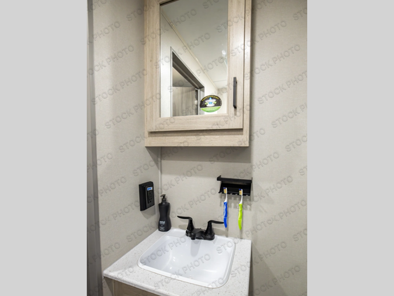 It's not hard to find comfort in this travel trailer with its triple slides, theater seating, and spacious full bath. Once your crew is settled and unpacked, head outdoors to relax under the two power awnings with multicolored LED lights, or grab the fishing poles from the exterior storage and head to the water. If you'd rather spend your day inside you'll find all the comforts of home; theater seating, a sofa and booth dinette, plus a fully equipped kitchen, complete with a kitchen island! You will love having your own space in the front bedroom that includes a queen bed slide out, a dresser, plus two closets. There is even washer and dryer prep if you plan to go full-time!