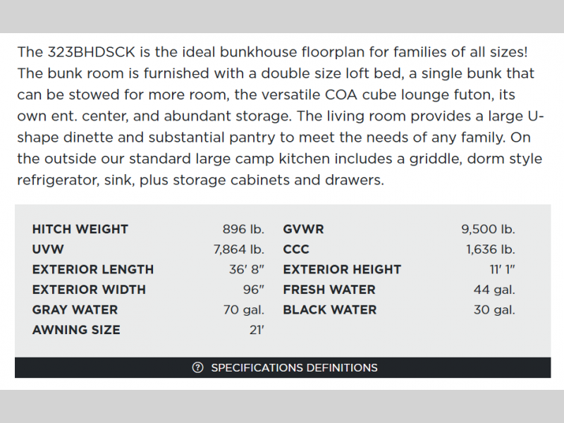 | Awning Info | 21' Electric w/Multicolor LED Strip & Remote |