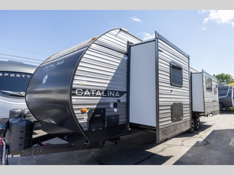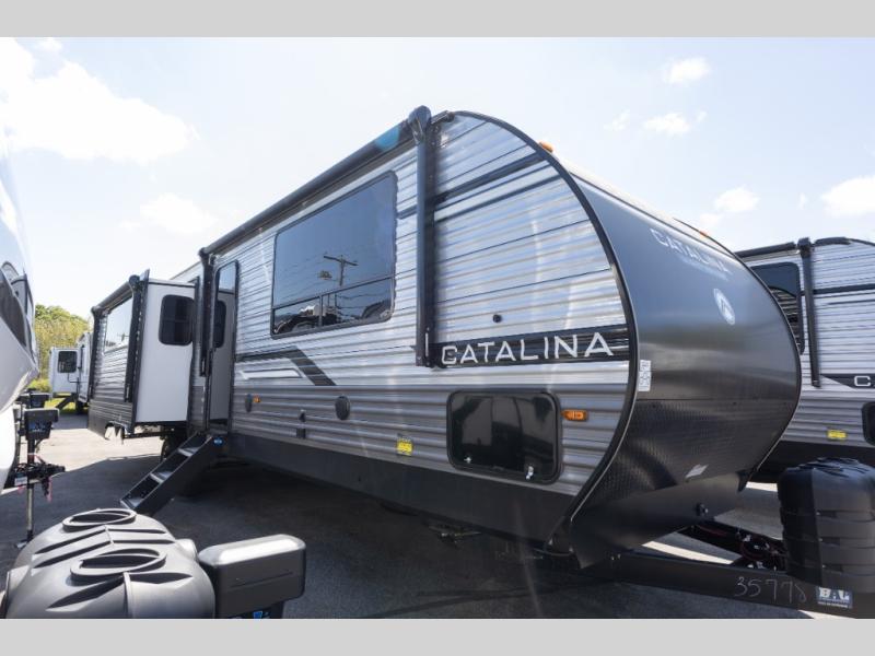 Each Catalina Legacy travel trailer by Coachmen is constructed with a cambered structural steel I-beam frame for added strength and support, plus an enclosed and fully sealed corrugated underbelly to extend your camping season. There is also a seamless Alpha roof membrane, R-7 insulation throughout, full length frame outriggers, plus many more durable construction materials. You will love the 6' 9" interior height, along with Congoleum woodplank linoleum flooring, seamless Thermofoil countertops, and hard valance window treatments. Choose a Catalina Legacy today!