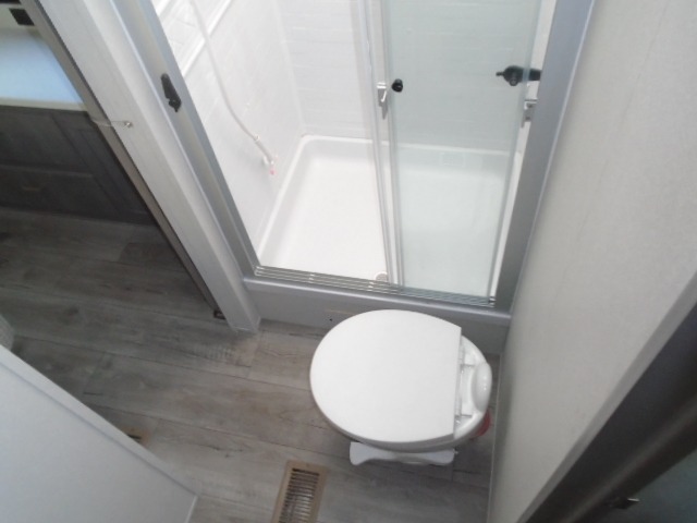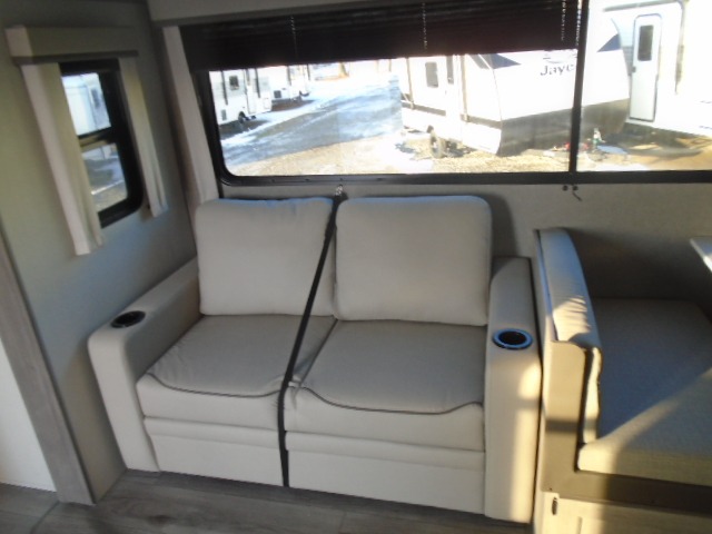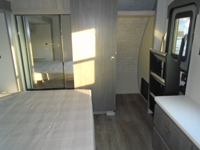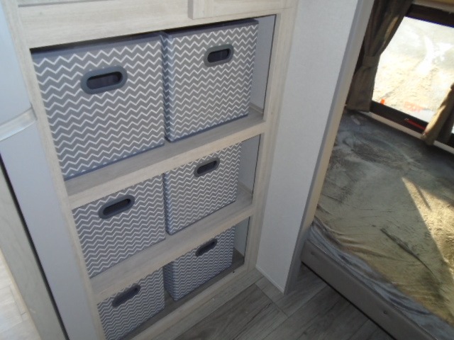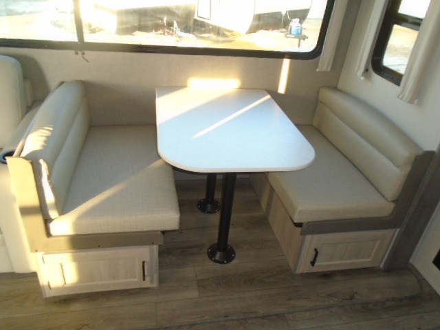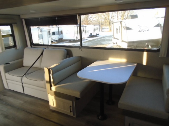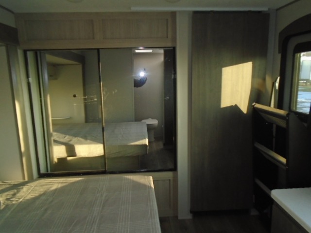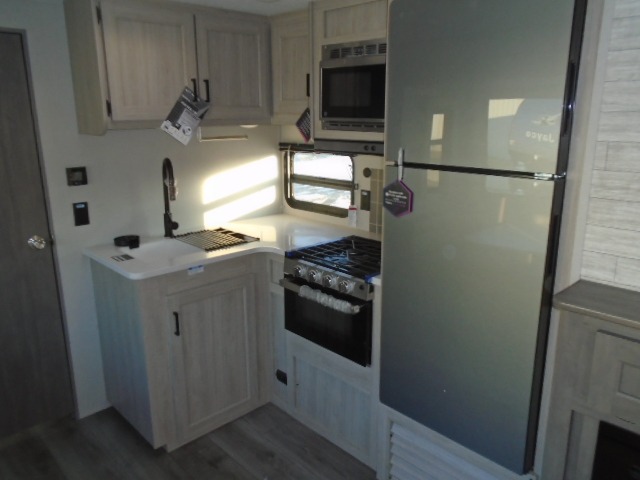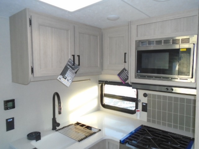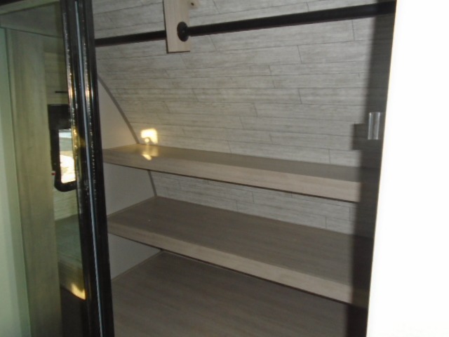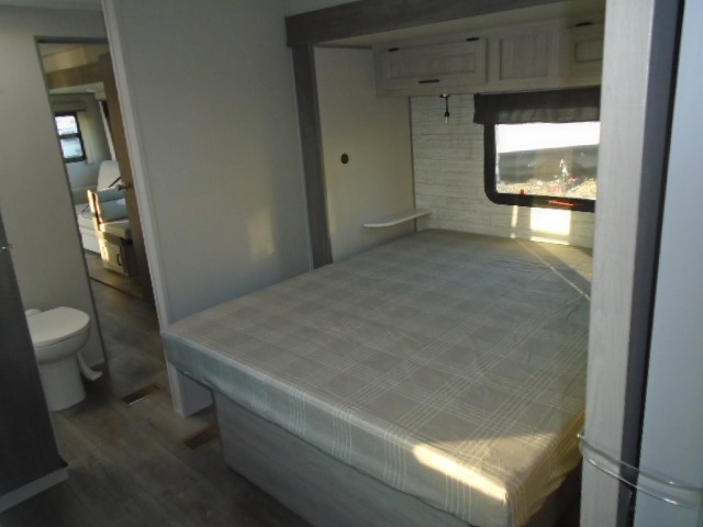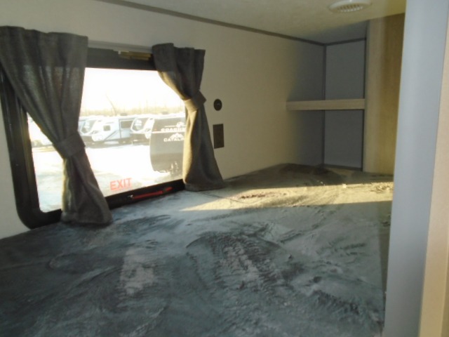 The bunk beds are perfect for the crew: kids, friends, or family, everyone’s comfy. The trundle sofa is a great spot for extra chill time or accommodating guests. The dinette is ideal for meals, homework, or game nights. And with the entertainment center, movie nights are a breeze. The walk-in closet/pantry gives you plenty of space to stash snacks, drinks, and more. The kitchen’s equipped with a refrigerator, microwave, and sink, perfect for easy meals and quick bites. Further, the walk-through bathroom is super handy, so you can refresh and get ready without fuss. In addition, the queen bed is perfect for having comfy nights ahead, and the overhead cabinets, dresser, and closet are ideal for keeping things tidy and organized.