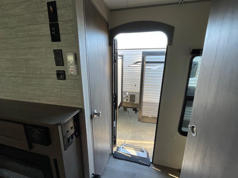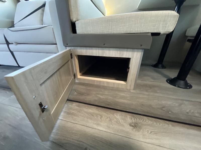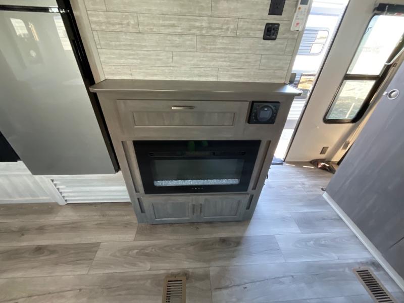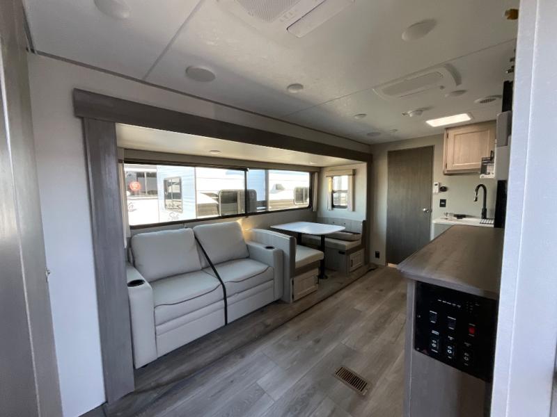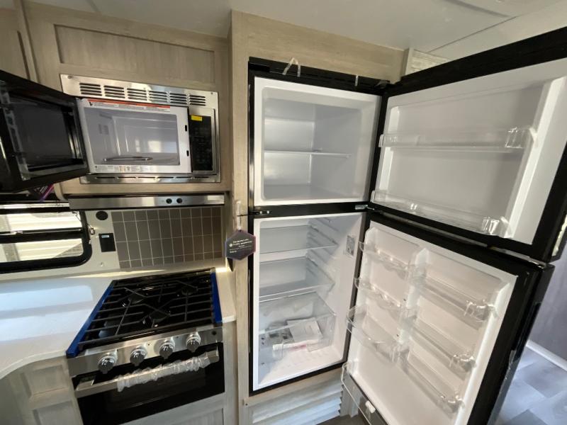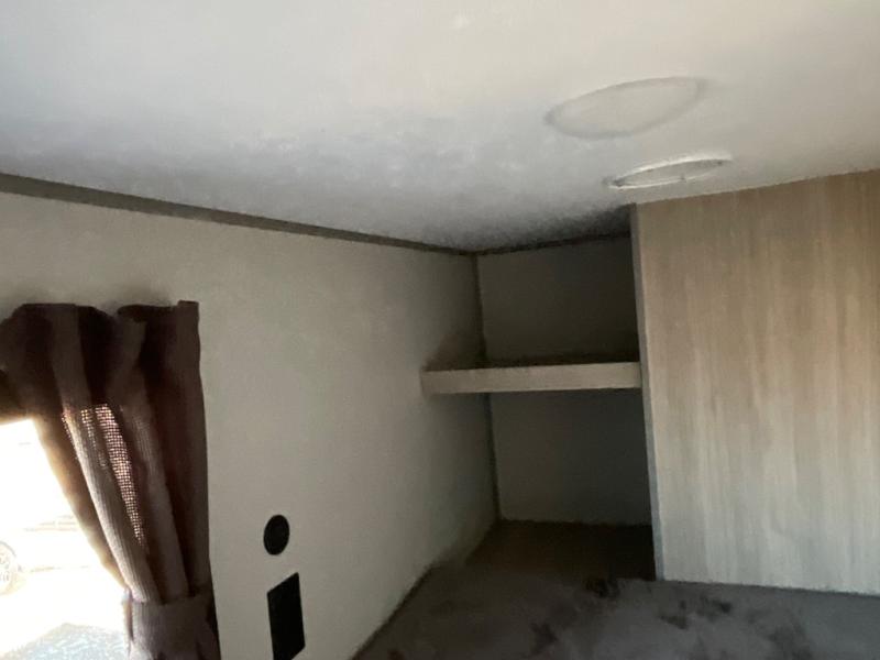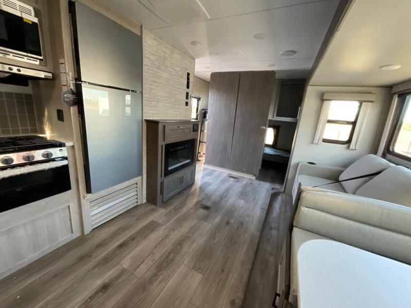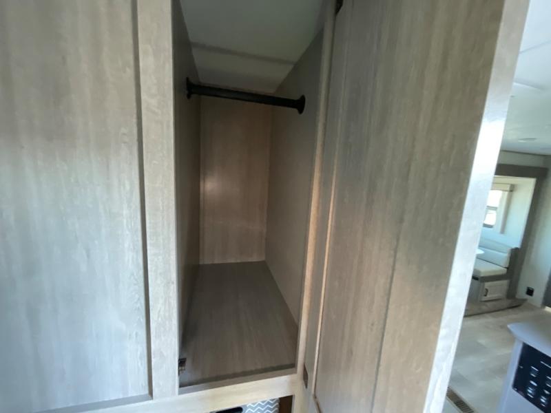 The bunk beds are perfect for the crew: kids, friends, or family, everyone’s comfy. The trundle sofa is a great spot for extra chill time or accommodating guests. The dinette is ideal for meals, homework, or game nights. And with the entertainment center, movie nights are a breeze. The walk-in closet/pantry gives you plenty of space to stash snacks, drinks, and more. The kitchen’s equipped with a refrigerator, microwave, and sink, perfect for easy meals and quick bites. Further, the walk-through bathroom is super handy, so you can refresh and get ready without fuss. In addition, the queen bed is perfect for having comfy nights ahead, and the overhead cabinets, dresser, and closet are ideal for keeping things tidy and organized.