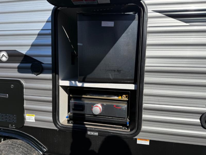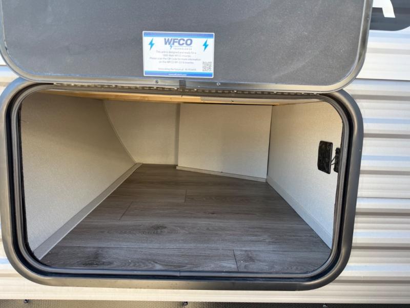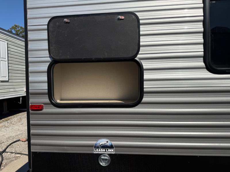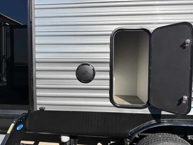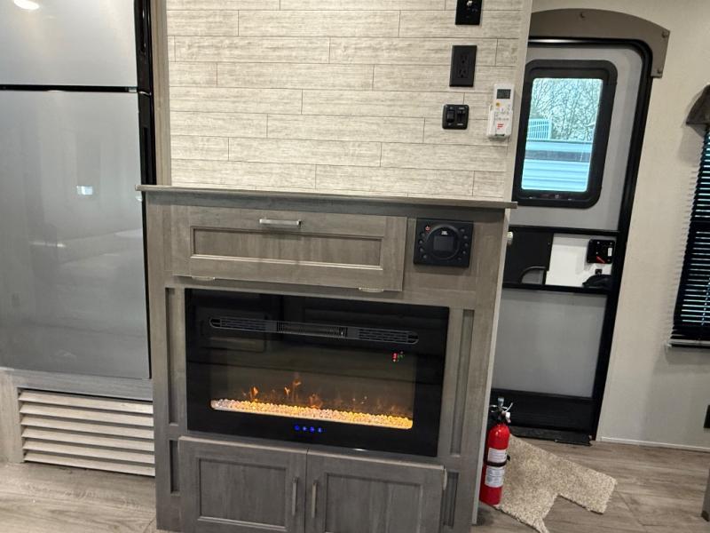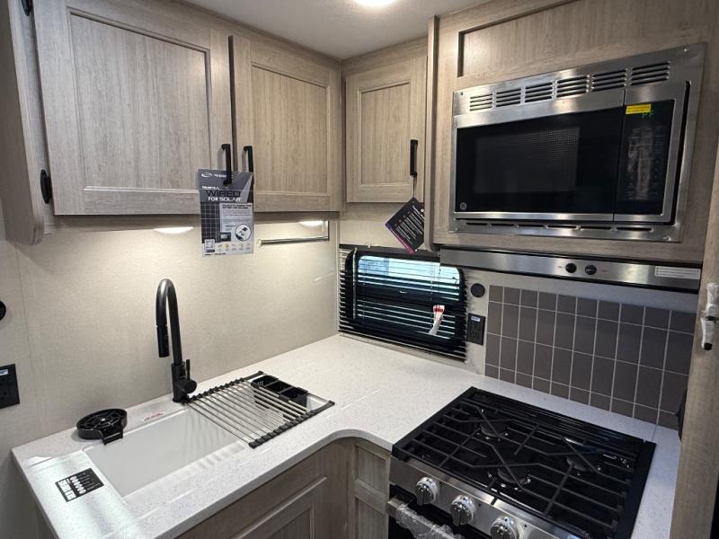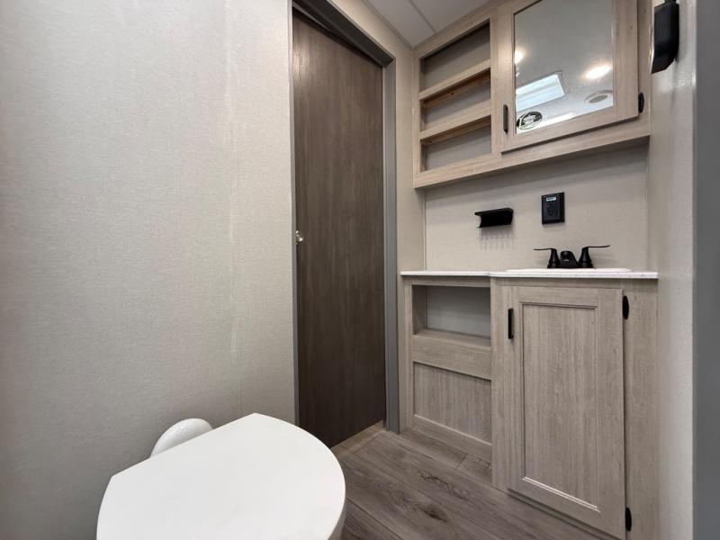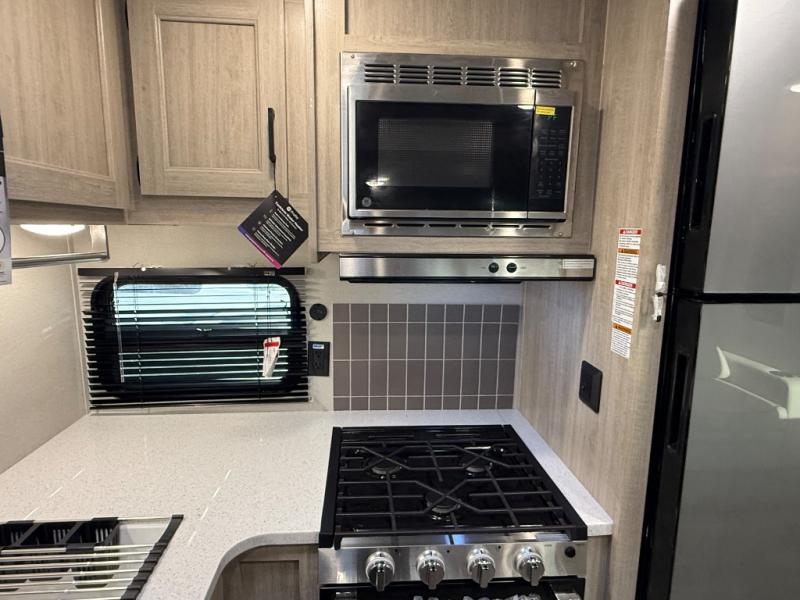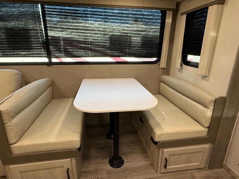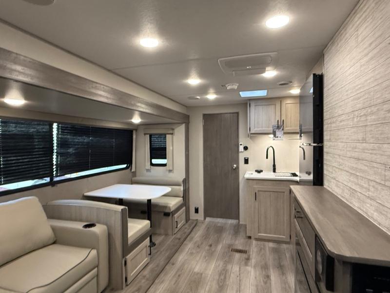 The bunk beds are perfect for the crew: kids, friends, or family, everyone’s comfy. The trundle sofa is a great spot for extra chill time or accommodating guests. The dinette is ideal for meals, homework, or game nights. And with the entertainment center, movie nights are a breeze. The walk-in closet/pantry gives you plenty of space to stash snacks, drinks, and more. The kitchen’s equipped with a refrigerator, microwave, and sink, perfect for easy meals and quick bites. Further, the walk-through bathroom is super handy, so you can refresh and get ready without fuss. In addition, the queen bed is perfect for having comfy nights ahead, and the overhead cabinets, dresser, and closet are ideal for keeping things tidy and organized.