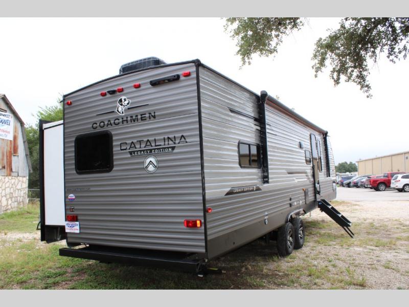 Each Catalina Legacy travel trailer by Coachmen is constructed with a cambered structural steel I-beam frame for added strength and support, plus an enclosed and fully sealed corrugated underbelly to extend your camping season. There is also a seamless Alpha roof membrane, R-7 insulation throughout, full length frame outriggers, plus many more durable construction materials. You will love the 6' 9" interior height, along with Congoleum woodplank linoleum flooring, solid surface kitchen countertops, and hard valance window treatments. Choose a Catalina Legacy today!