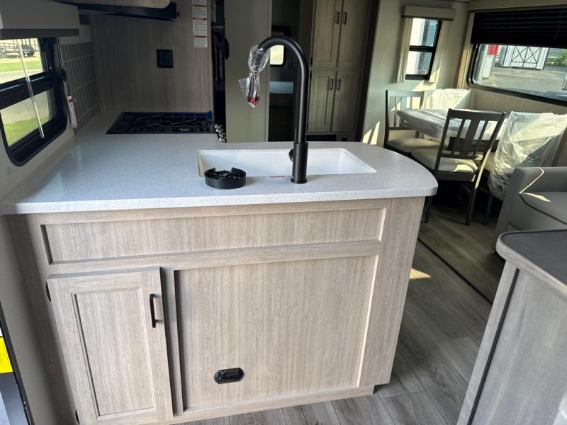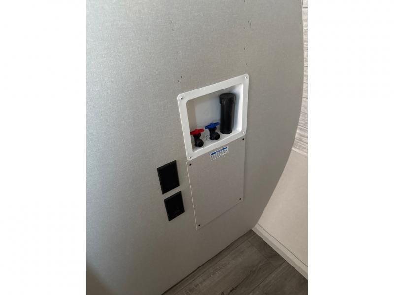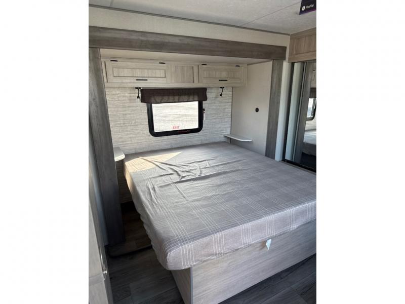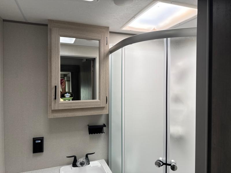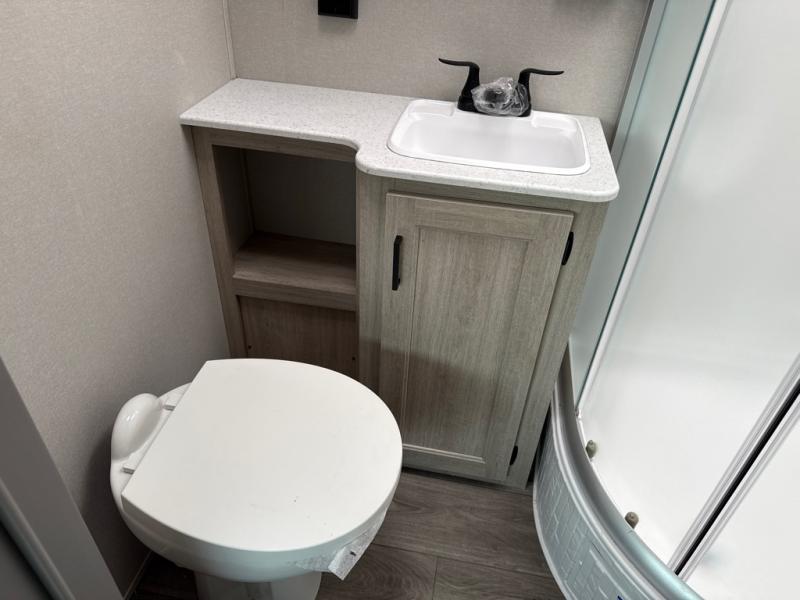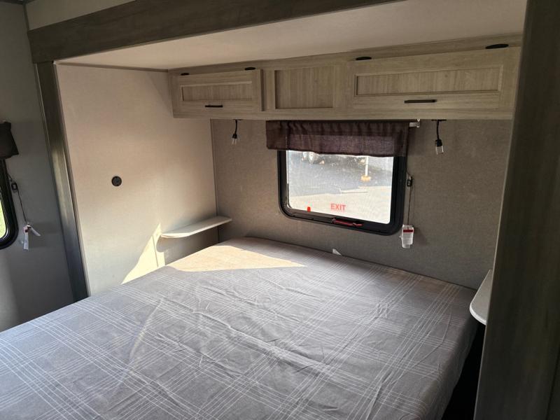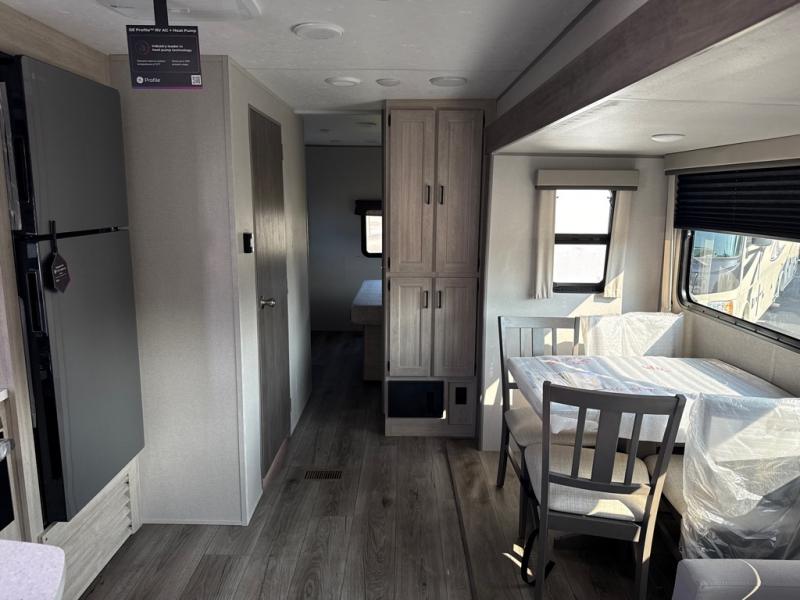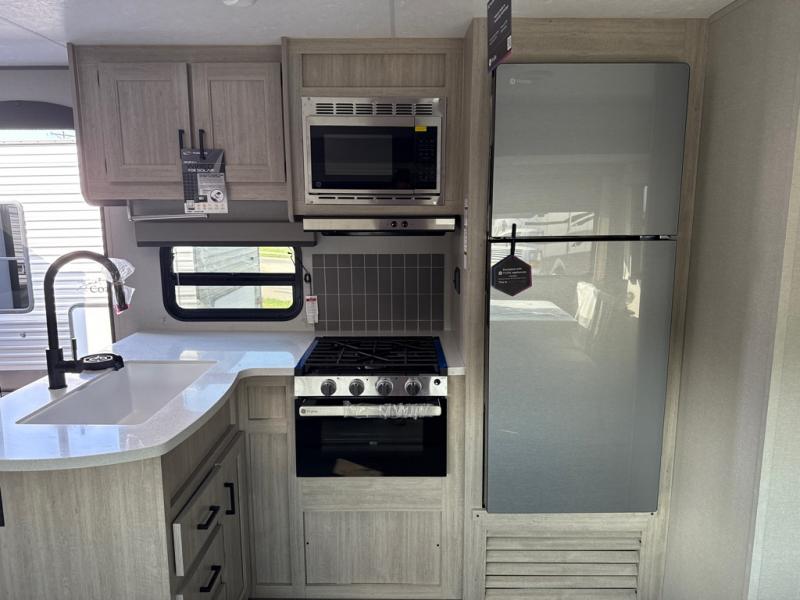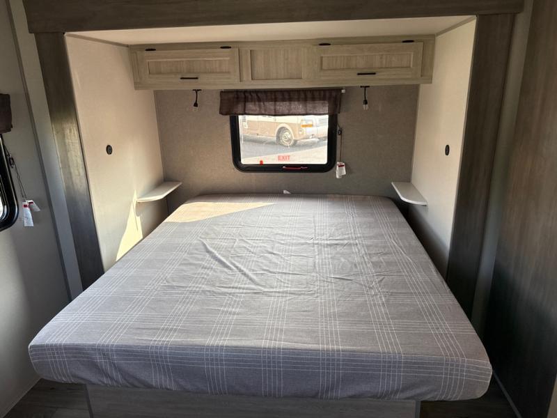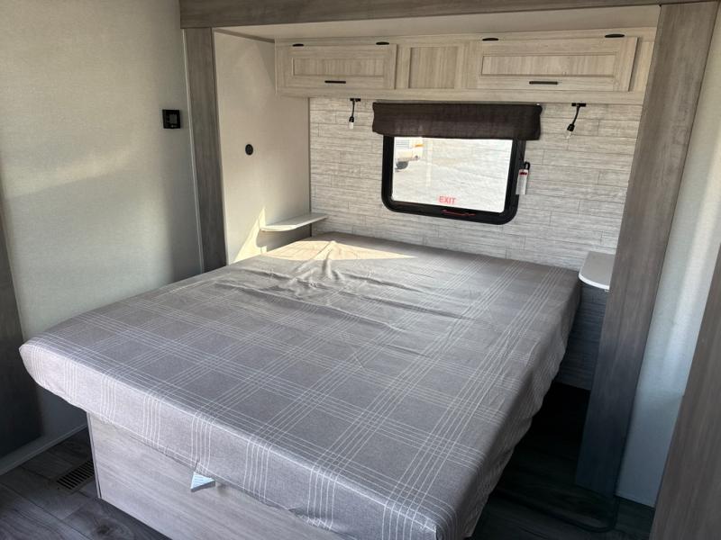 This unique travel trailer offers two bedrooms complete with a slide out queen beds with nightstands, and clothing storage. You can choose from the front bedroom with a large closet and a second closet prepped for a washer and dryer, or the rear bedroom with a wardrobe and TV cabinet. With three total slides throughout there is space for everyone! You and your family will love the combined living and kitchen area with a slide out booth dinette and sofa with drink holders, and maybe you'll decide to add the fireplace option. The L-shaped kitchen counter allows the cook to make meals without moving for anyone trying to get to the full bathroom or either bedroom. And when you want to relax outdoors, the 21' power awning with multicolor LED lights allows you to choose the color you like best.