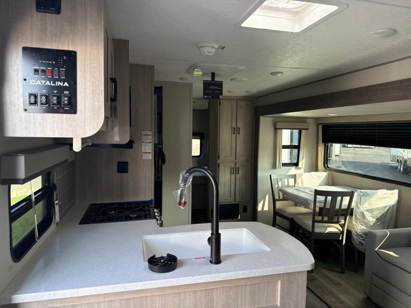 Each Catalina Legacy travel trailer by Coachmen is constructed with a cambered structural steel I-beam frame for added strength and support, plus an enclosed and fully sealed corrugated underbelly to extend your camping season. There is also a seamless Alpha roof membrane, R-7 insulation throughout, full length frame outriggers, plus many more durable construction materials. You will love the 6' 9" interior height, along with Congoleum woodplank linoleum flooring, seamless Thermofoil countertops, and hard valance window treatments. Choose a Catalina Legacy today!
