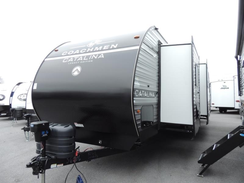 Each Catalina Legacy travel trailer by Coachmen is constructed with a cambered structural steel I-beam frame for added strength and support, plus an enclosed and fully sealed corrugated underbelly to extend your camping season. There is also a seamless Alpha roof membrane, R-7 insulation throughout, full length frame outriggers, plus many more durable construction materials. You will love the 6' 9" interior height, along with Congoleum woodplank linoleum flooring, solid surface kitchen countertops, and hard valance window treatments. Choose a Catalina Legacy today!