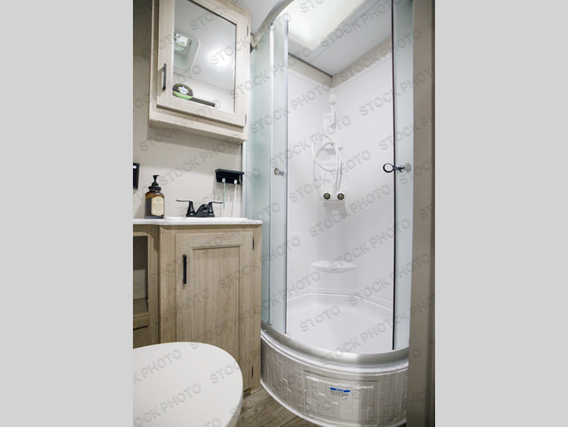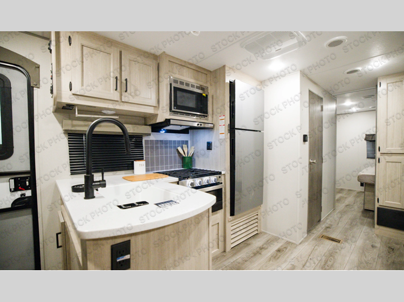 This unique travel trailer offers two bedrooms complete with a slide out RV queen beds with nightstands, and clothing storage. You can choose from the front bedroom with a large closet and a second closet prepped for a washer and dryer, or the rear bedroom with a wardrobe and TV cabinet. With three total slides throughout there is space for everyone! You and your family will love the combined living and kitchen area with a slide out booth dinette and sofa with drink holders, and maybe you'll decide to add the fireplace option. The L-shaped kitchen counter allows the cook to make meals without moving for anyone trying to get to the full bathroom or either bedroom. And when you want to relax outdoors, the 21' power awning with multicolor LED lights allows you to choose the color you like best.