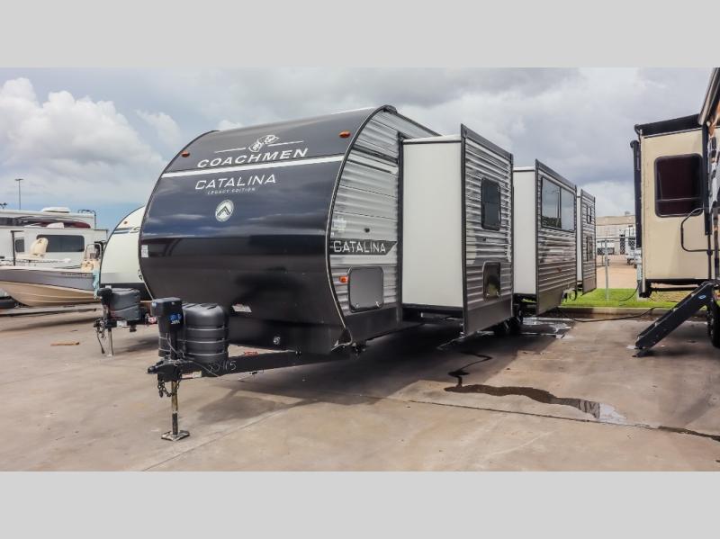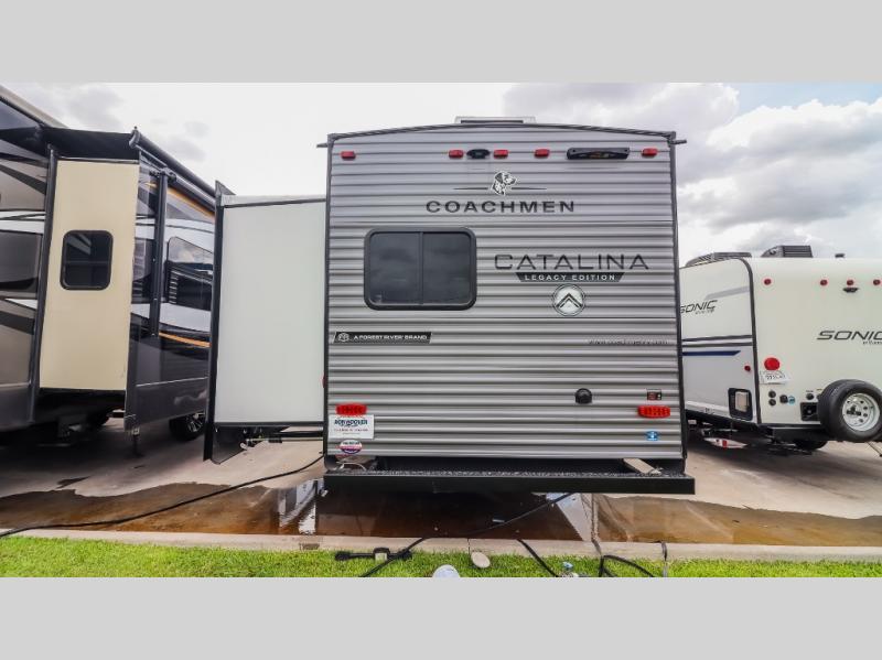 Each Catalina Legacy travel trailer by Coachmen is constructed with a cambered structural steel I-beam frame for added strength and support, plus an enclosed and fully sealed corrugated underbelly to extend your camping season. There is also a seamless Alpha roof membrane, R-7 insulation throughout, full length frame outriggers, plus many more durable construction materials. You will love the 6' 9" interior height, along with Congoleum woodplank linoleum flooring, solid surface kitchen countertops, and hard valance window treatments. Choose a Catalina Legacy today!