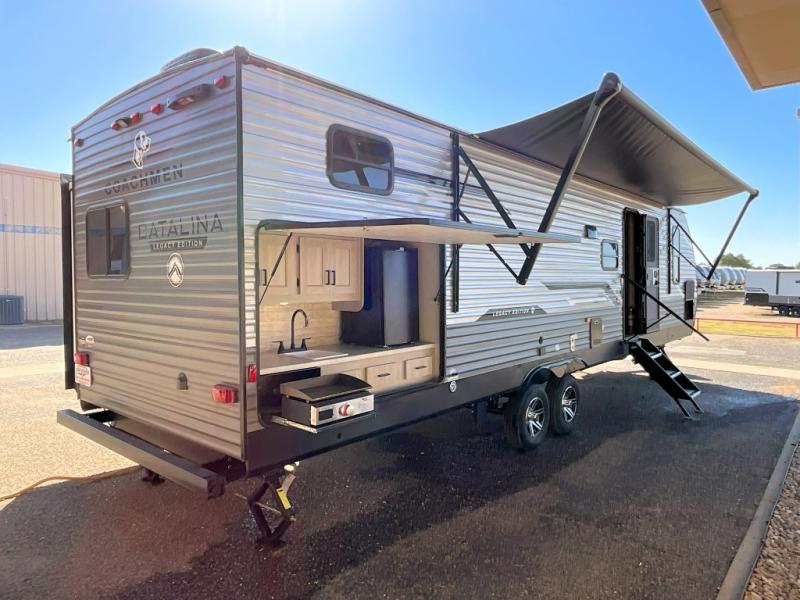 Each Catalina Legacy travel trailer by Coachmen is constructed with a cambered structural steel I-beam frame for added strength and support, plus an enclosed and fully sealed corrugated underbelly to extend your camping season. There is also a seamless Alpha roof membrane, R-7 insulation throughout, full length frame outriggers, plus many more durable construction materials. You will love the 6' 9" interior height, along with Congoleum woodplank linoleum flooring, solid surface kitchen countertops, and hard valance window treatments. Choose a Catalina Legacy today!