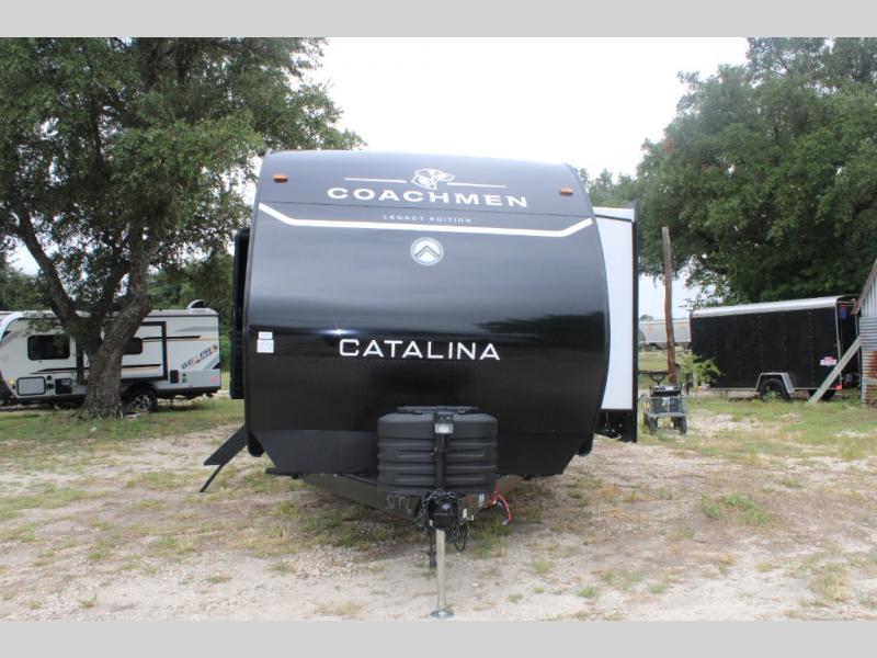 Each Catalina Legacy travel trailer by Coachmen is constructed with a cambered structural steel I-beam frame for added strength and support, plus an enclosed and fully sealed corrugated underbelly to extend your camping season. There is also a seamless Alpha roof membrane, R-7 insulation throughout, full length frame outriggers, plus many more durable construction materials. You will love the 6' 9" interior height, along with Congoleum woodplank linoleum flooring, solid surface kitchen countertops, and hard valance window treatments. Choose a Catalina Legacy today!