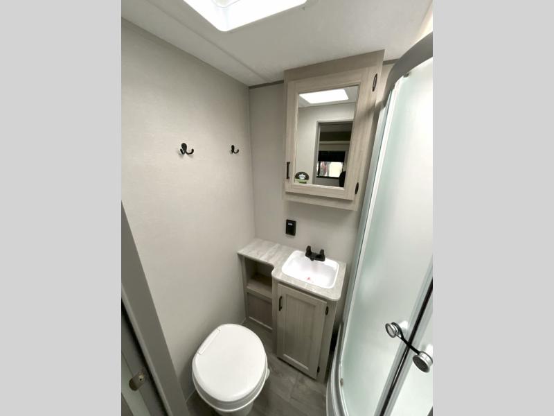 This family-friendly trailer offers lots of floor space thanks to the triple slides throughout! You and your family will love the combined living and kitchen area with a slide out booth dinette and a sofa with drink holders. The L-shaped kitchen counter allows the cook to make meals without moving for anyone trying to get to the full bathroom or the rear bunkhouse. The kids will have their own privacy, two bunk beds, a jack knife sofa with storage totes below plus a TV/wardrobe cabinet. The front private bedroom allows you to sleep like royalty and offers a large closet for your clothing and another closet prepped for a washer/dryer. And don't forget about the full-size camper kitchen and the 21' power awning with multicolor LED lights when you are outside.