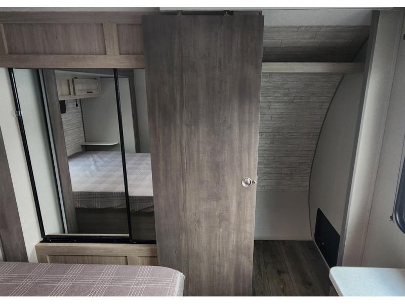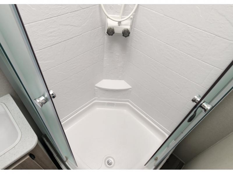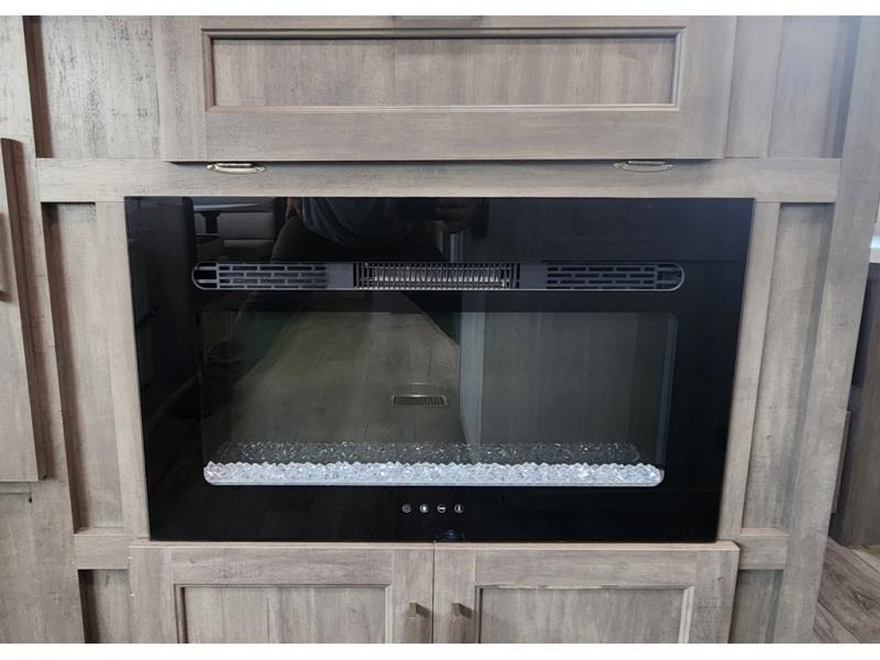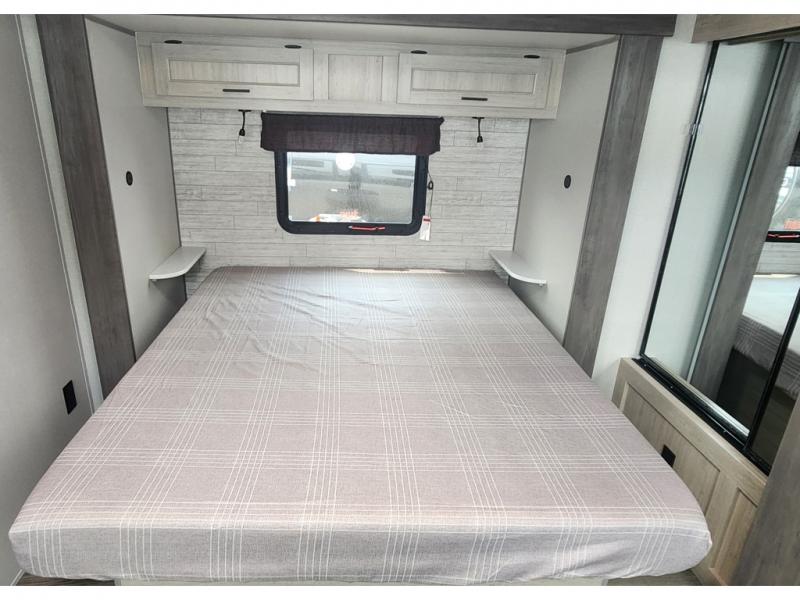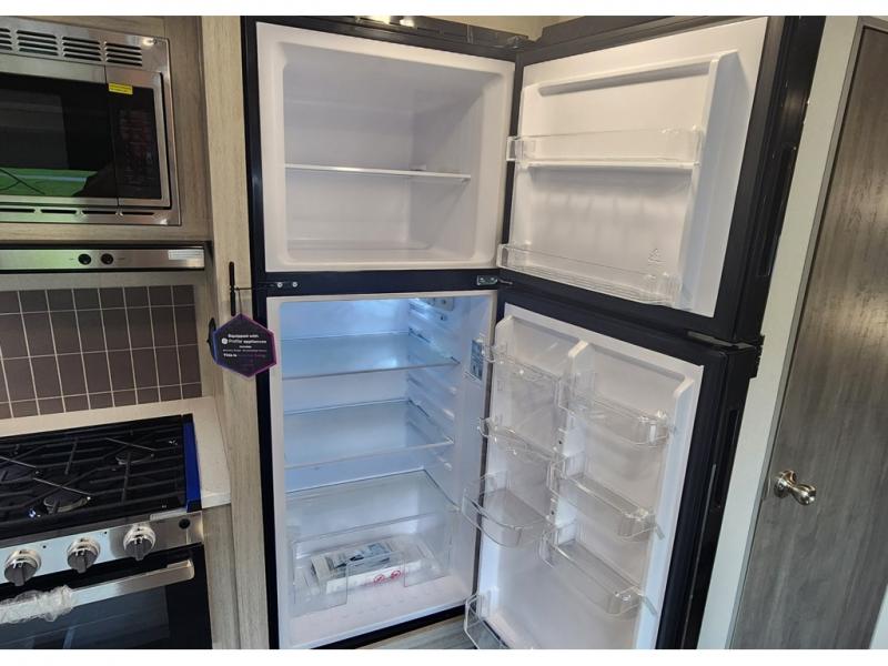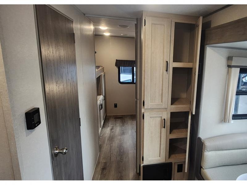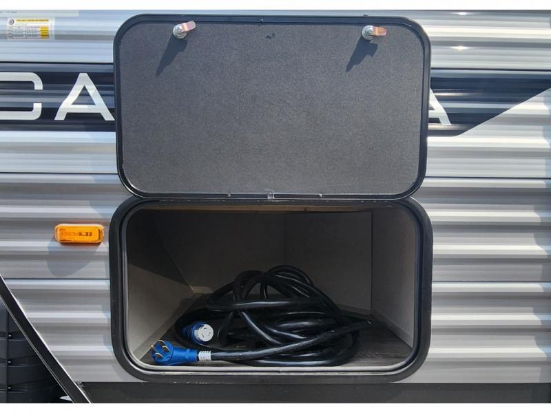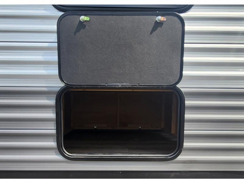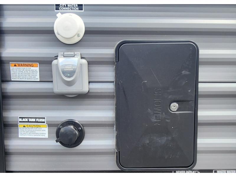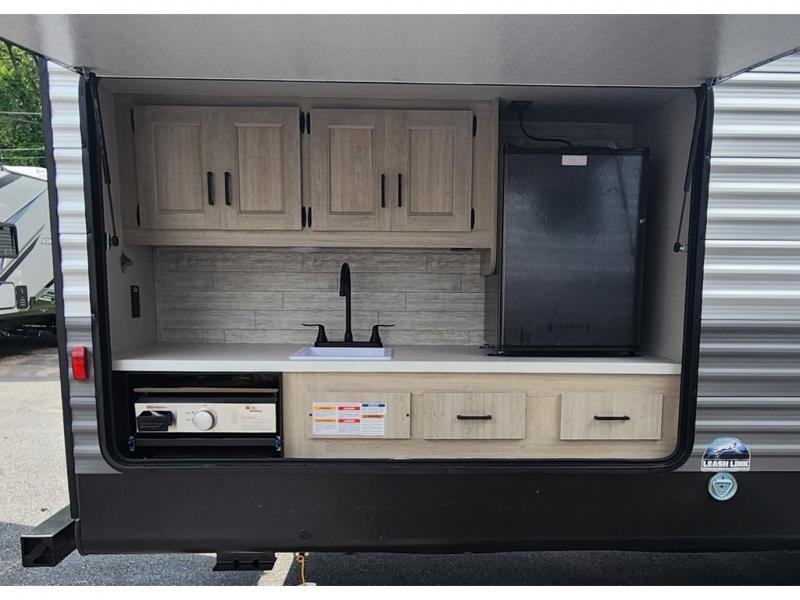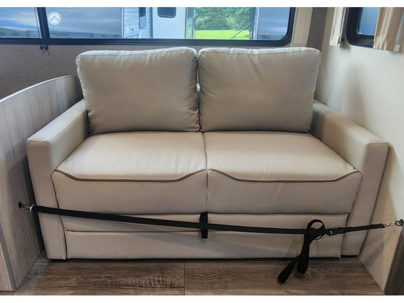 This family-friendly trailer offers lots of floor space thanks to the triple slides throughout! You and your family will love the combined living and kitchen area with a slide out booth dinette and a sofa with drink holders. The L-shaped kitchen counter allows the cook to make meals without moving for anyone trying to get to the full bathroom or the rear bunkhouse. The kids will have their own privacy, two bunk beds, a jack knife sofa with storage totes below plus a TV/wardrobe cabinet. The front private bedroom allows you to sleep like royalty, and offers a large closet for your clothing and another closet prepped for a washer/dryer. And don't forget about the full size camper kitchen and the 21' power awning with multicolor LED lights when you are outside.