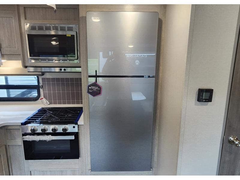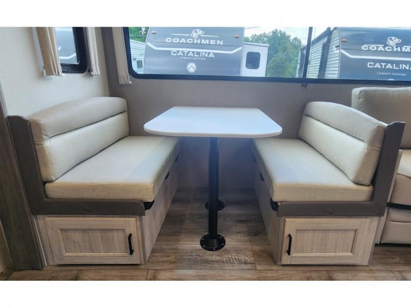 Each Catalina Legacy travel trailer by Coachmen is constructed with a cambered structural steel I-beam frame for added strength and support, plus an enclosed and fully sealed corrugated underbelly to extend your camping season. There is also a seamless Alpha roof membrane, R-7 insulation throughout, full length frame outriggers, plus many more durable construction materials. You will love the 6' 9" interior height, along with Congoleum woodplank linoleum flooring, seamless Thermofoil countertops, and hard valance window treatments. Choose a Catalina Legacy today!