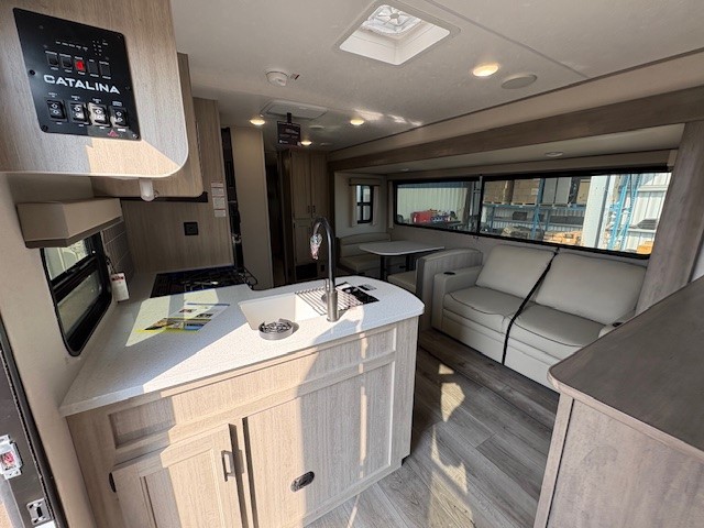 Each Catalina Legacy travel trailer by Coachmen is constructed with a cambered structural steel I-beam frame for added strength and support, plus an enclosed and fully sealed corrugated underbelly to extend your camping season. There is also a seamless Alpha roof membrane, R-7 insulation throughout, full length frame outriggers, plus many more durable construction materials. You will love the 6' 9" interior height, along with Congoleum woodplank linoleum flooring, seamless Thermofoil countertops, and hard valance window treatments. Choose a Catalina Legacy today!