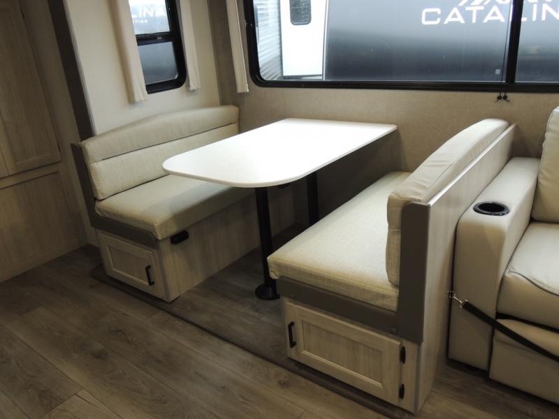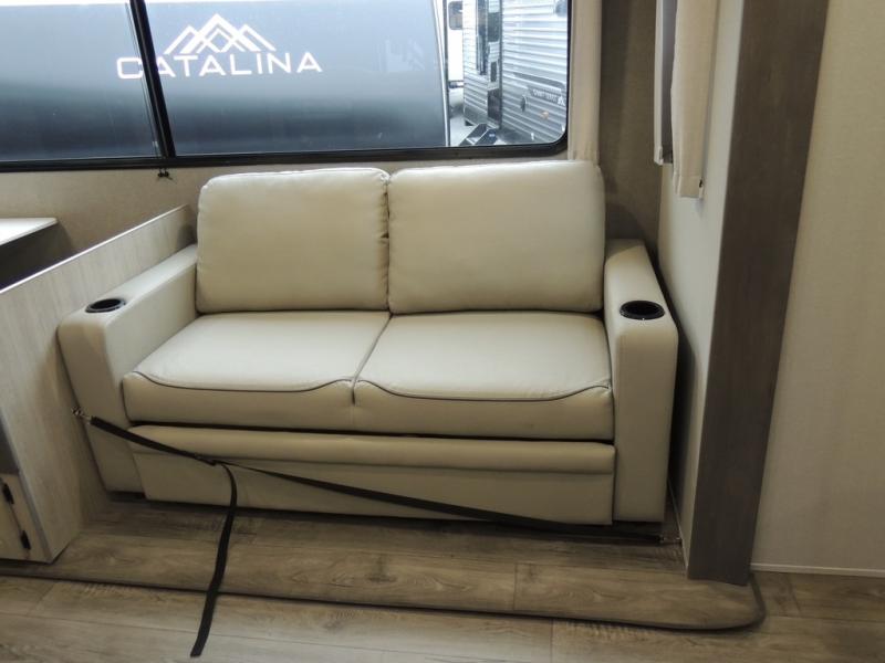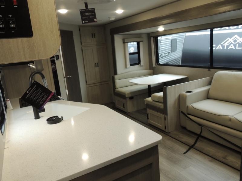 Each Catalina Legacy travel trailer by Coachmen is constructed with a cambered structural steel I-beam frame for added strength and support, plus an enclosed and fully sealed corrugated underbelly to extend your camping season. There is also a seamless Alpha roof membrane, R-7 insulation throughout, full length frame outriggers, plus many more durable construction materials. You will love the 6' 9" interior height, along with Congoleum woodplank linoleum flooring, solid surface kitchen countertops, and hard valance window treatments. Choose a Catalina Legacy today!