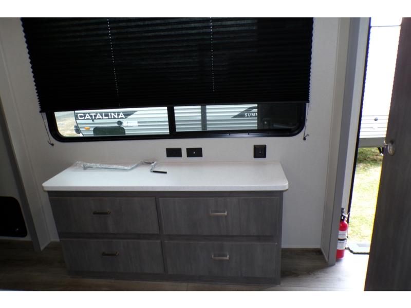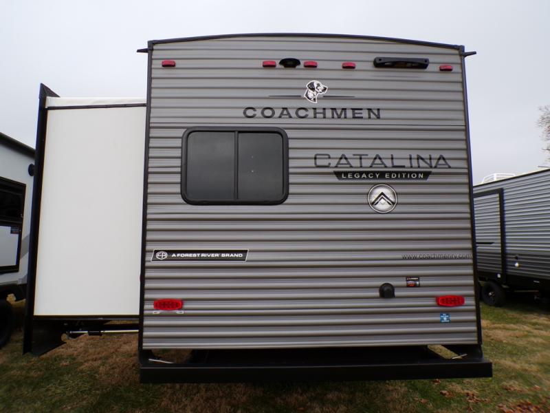 Each Catalina Legacy travel trailer by Coachmen is constructed with a cambered structural steel I-beam frame for added strength and support, plus an enclosed and fully sealed corrugated underbelly to extend your camping season. There is also a seamless Alpha roof membrane, R-7 insulation throughout, full length frame outriggers, plus many more durable construction materials. You will love the 6' 9" interior height, along with Congoleum woodplank linoleum flooring, solid surface kitchen countertops, and hard valance window treatments. Choose a Catalina Legacy today!