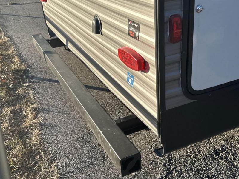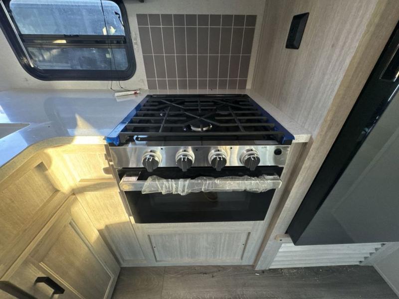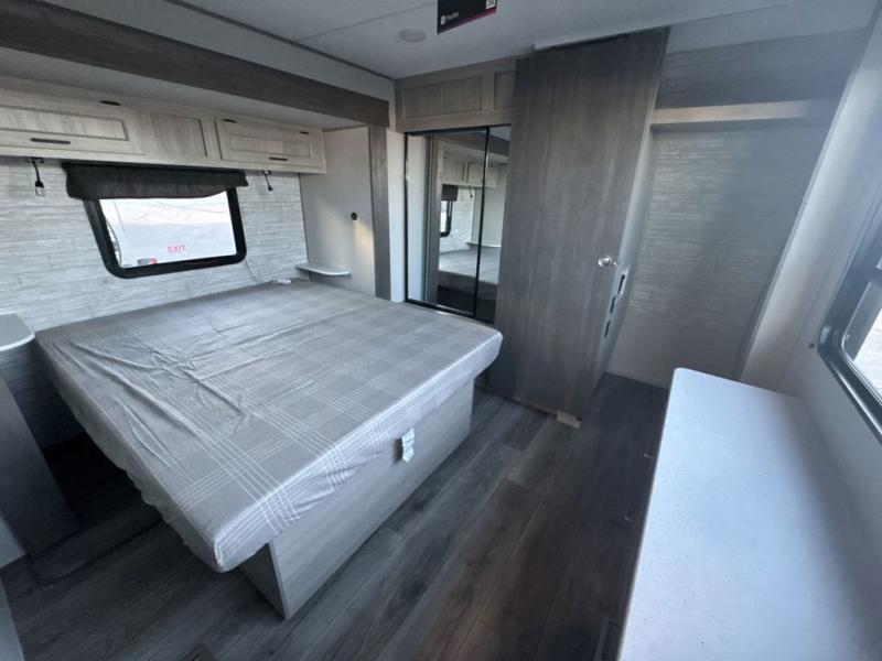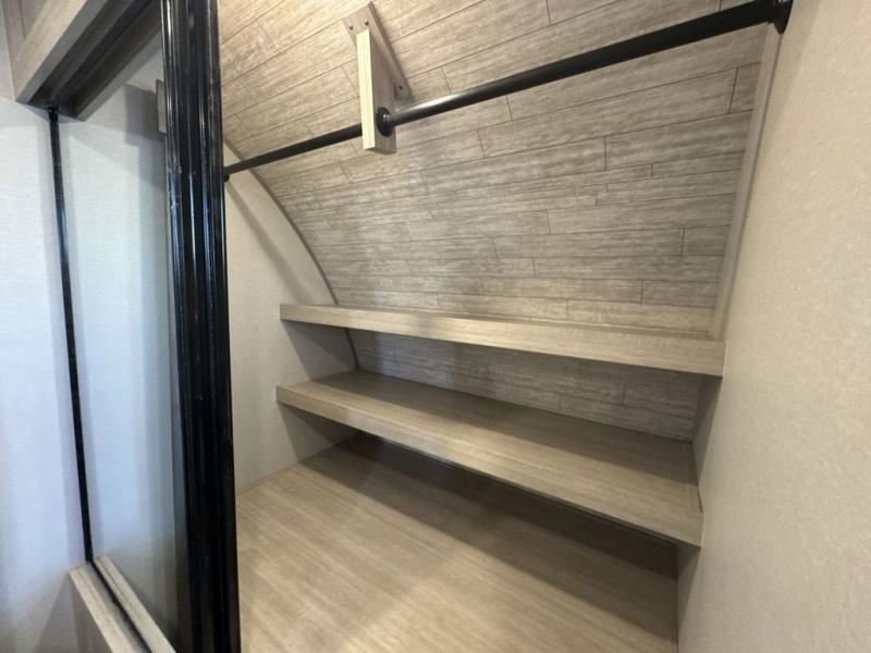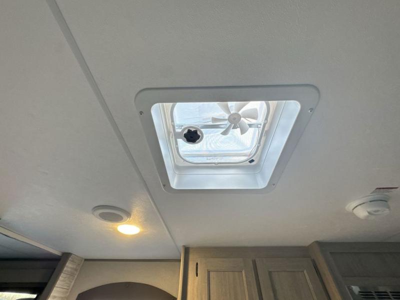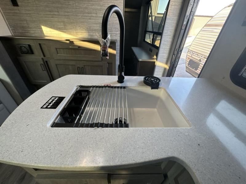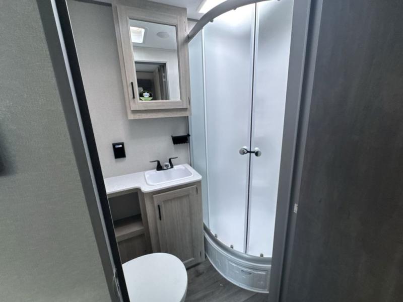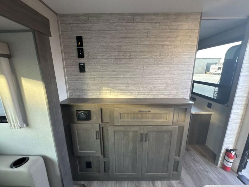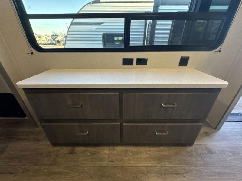 This family-friendly trailer offers lots of floor space thanks to the triple slides throughout! You and your family will love the combined living and kitchen area with a slide out booth dinette and a sofa with drink holders. The L-shaped kitchen counter allows the cook to make meals without moving for anyone trying to get to the full bathroom or the rear bunkhouse. The kids will have their own privacy, two bunk beds, a jack knife sofa with storage totes below plus a TV/wardrobe cabinet. The front private bedroom allows you to sleep like royalty and offers a large closet for your clothing and another closet prepped for a washer/dryer. And don't forget about the full-size camper kitchen and the 21' power awning with multicolor LED lights when you are outside.
