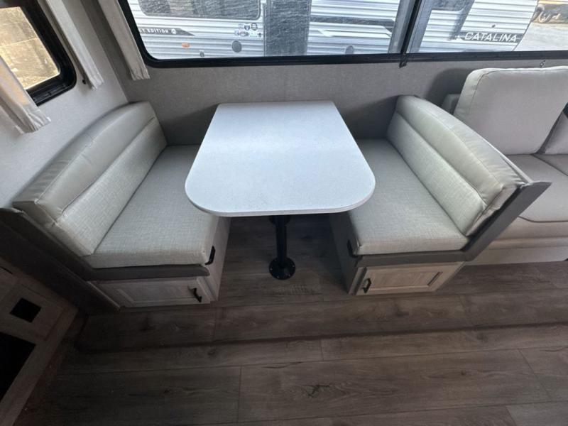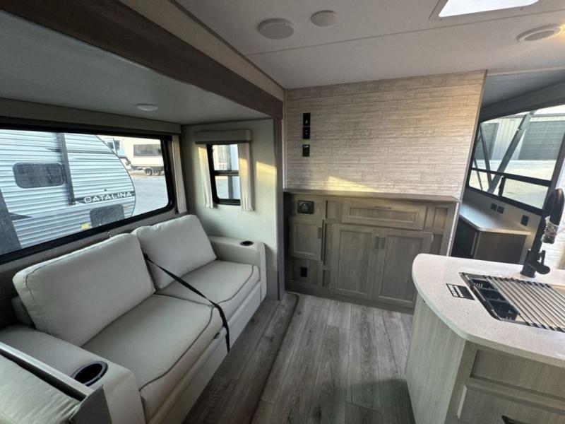 Each Catalina Legacy travel trailer by Coachmen is constructed with a cambered structural steel I-beam frame for added strength and support, plus an enclosed and fully sealed corrugated underbelly to extend your camping season. There is also a seamless Alpha roof membrane, R-7 insulation throughout, full length frame outriggers, plus many more durable construction materials. You will love the 6' 9" interior height, along with Congoleum woodplank linoleum flooring, solid surface kitchen countertops, and hard valance window treatments. Choose a Catalina Legacy today!