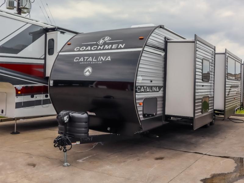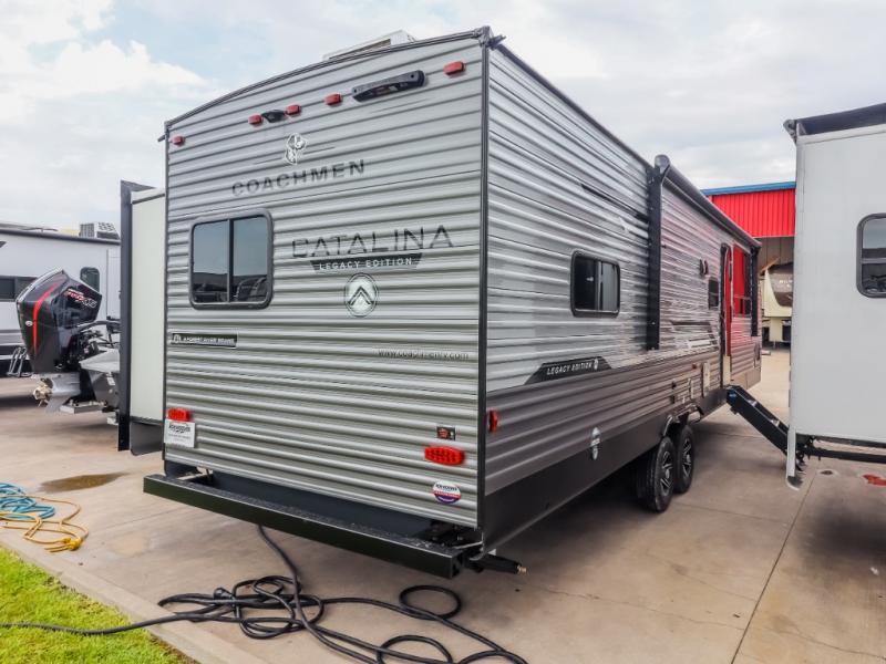 Each Catalina Legacy travel trailer by Coachmen is constructed with a cambered structural steel I-beam frame for added strength and support, plus an enclosed and fully sealed corrugated underbelly to extend your camping season. There is also a seamless Alpha roof membrane, R-7 insulation throughout, full length frame outriggers, plus many more durable construction materials. You will love the 6' 9" interior height, along with Congoleum woodplank linoleum flooring, solid surface kitchen countertops, and hard valance window treatments. Choose a Catalina Legacy today!
