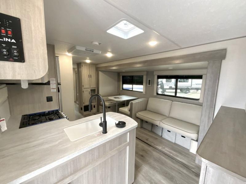Each Catalina Legacy travel trailer by Coachmen is constructed with a cambered structural steel I-beam frame for added strength and support, plus an enclosed and fully sealed corrugated underbelly to extend your camping season. There is also a seamless Alpha roof membrane, R-7 insulation throughout, full length frame outriggers, plus many more durable construction materials. You will love the 6' 9" interior height, along with Congoleum woodplank linoleum flooring, solid surface kitchen countertops, and hard valance window treatments. Choose a Catalina Legacy today!