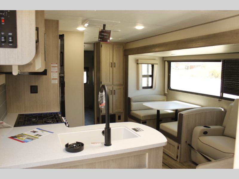 Each Catalina Legacy travel trailer by Coachmen is constructed with a cambered structural steel I-beam frame for added strength and support, plus an enclosed and fully sealed corrugated underbelly to extend your camping season. There is also a seamless Alpha roof membrane, R-7 insulation throughout, full length frame outriggers, plus many more durable construction materials. You will love the 6' 9" interior height, along with Congoleum woodplank linoleum flooring, seamless Thermofoil countertops, and hard valance window treatments. Choose a Catalina Legacy today!