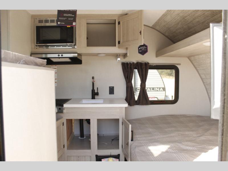 With any Catalina Summit Series 7' by Coachmen RV, you can create an easier adventure with the versatility and simplicity of the shorter lengths and lighter weights! Each includes a premium exterior graphics package, a smooth HD aluminum radius front, and EZ lube axles with leaf spring suspension. The exterior offers a heavy duty standard tongue jack, a diamond plate rock guard to protect against road debris, exterior RG-6 coax cabling and satellite prep, rear view camera prep, and flush mount baggage doors with radius corners for your outdoor gear. Inside, you will enjoy a premium JBL interior speaker, USB charging ports, seamless Thermofoil countertops throughout, a deep basin farm style sink for easy cleanup, and GE kitchen appliances. It's time to choose an affordable and maneuverable single axle trailer today!