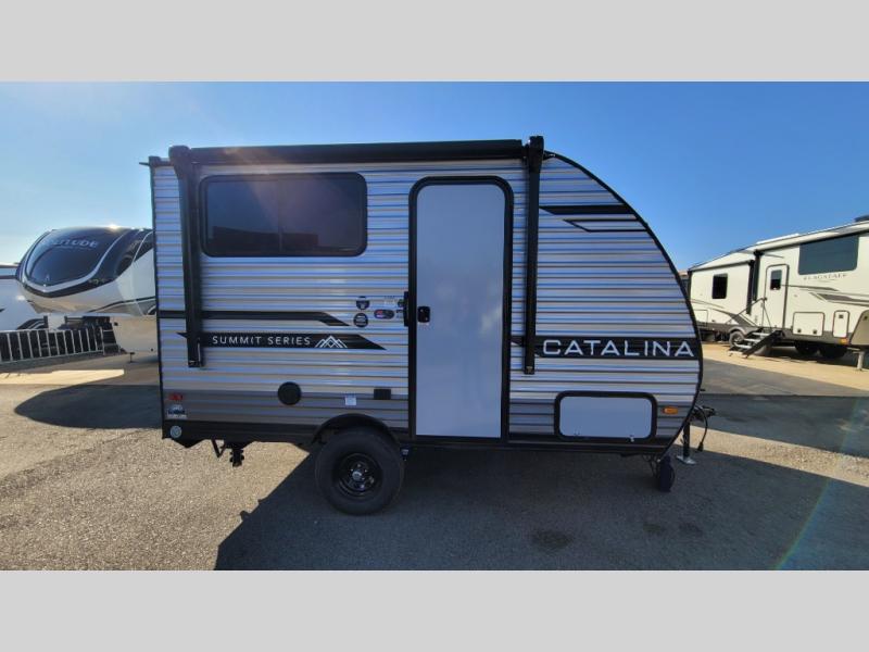 With any Catalina Summit Series 7' by Coachmen RV, you can create an easier adventure with the versatility and simplicity of the shorter lengths and lighter weights! Each includes a premium exterior graphics package, a smooth HD aluminum radius front, and EZ lube axles with leaf spring suspension. The exterior offers a heavy duty standard tongue jack, a diamond plate rock guard to protect against road debris, exterior RG-6 coax cabling and satellite prep, rear view camera prep, and flush mount baggage doors with radius corners for your outdoor gear. Inside, you will enjoy a premium JBL interior speaker, USB charging ports, seamless Thermofoil countertops throughout, a deep basin farm style sink for easy cleanup, and GE kitchen appliances. It's time to choose an affordable and maneuverable single axle trailer today!