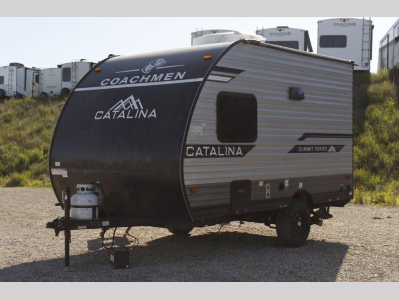 With any Catalina Summit Series 7' by Coachmen RV, you can create an easier adventure with the versatility and simplicity of the shorter lengths and lighter weights! Each includes a premium exterior graphics package, a smooth HD aluminum radius front, and EZ lube axles with leaf spring suspension. The exterior offers a heavy duty standard tongue jack, a diamond plate rock guard to protect against road debris, exterior RG-6 coax cabling and satellite prep, rear view camera prep, and flush mount baggage doors with radius corners for your outdoor gear. Inside, you will enjoy a premium JBL interior speaker, USB charging ports, seamless Thermofoil countertops throughout, a deep basin farm style sink for easy cleanup, and GE kitchen appliances. It's time to choose an affordable and maneuverable single axle trailer today!