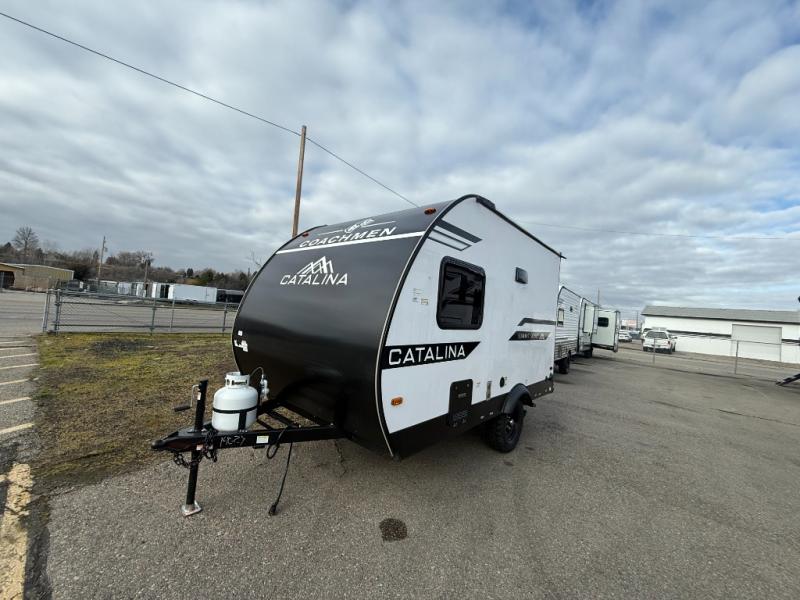 With any Catalina Summit Series 7' by Coachmen RV, you can create an easier adventure with the versatility and simplicity of the shorter lengths and lighter weights! Each includes a premium exterior graphics package, a smooth HD aluminum radius front, and EZ lube axles with leaf spring suspension. The exterior offers a heavy duty standard tongue jack, a diamond plate rock guard to protect against road debris, exterior RG-6 coax cabling and satellite prep, rear view camera prep, and flush mount baggage doors with radius corners for your outdoor gear. Inside, you will enjoy a premium JBL interior speaker, USB charging ports, seamless Thermofoil countertops throughout, a deep basin farm style sink for easy cleanup, and GE kitchen appliances. It's time to choose an affordable and maneuverable single axle trailer today!