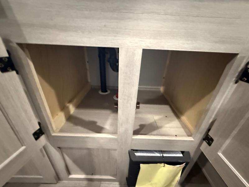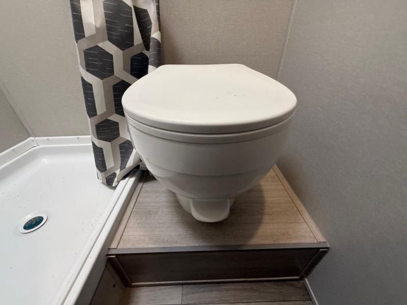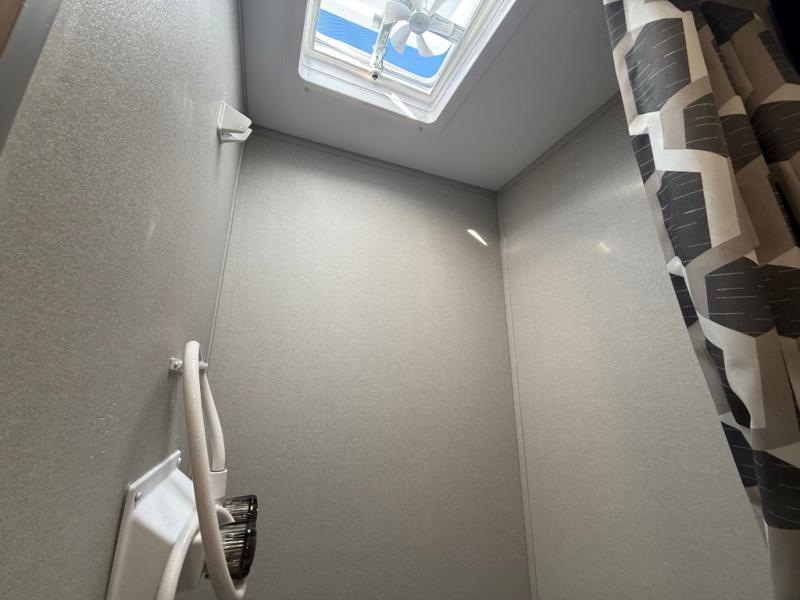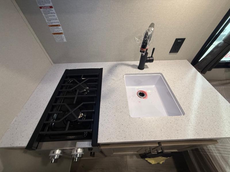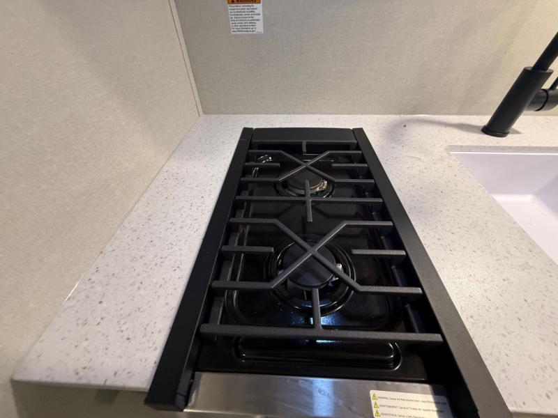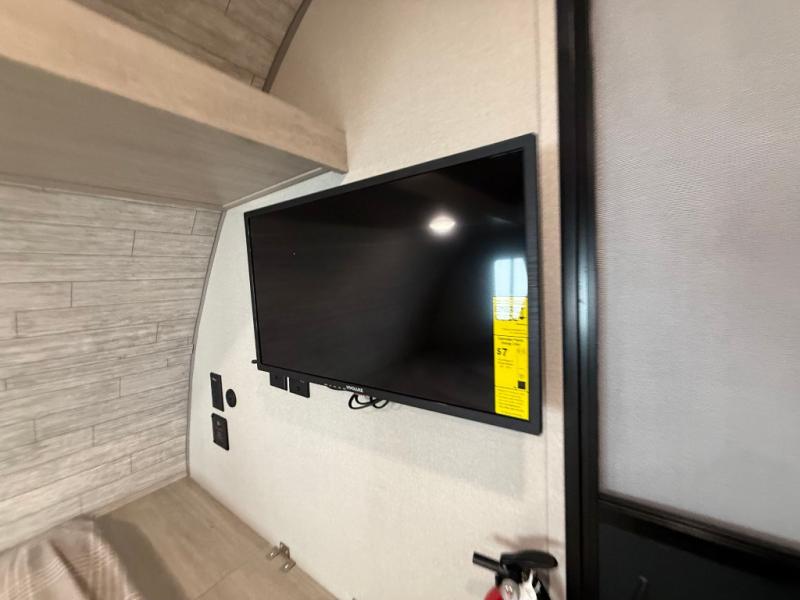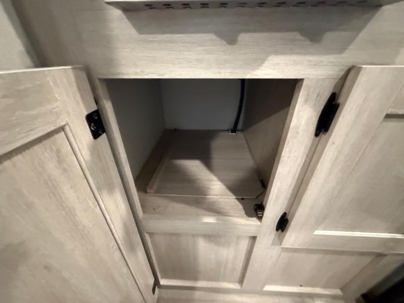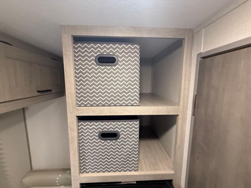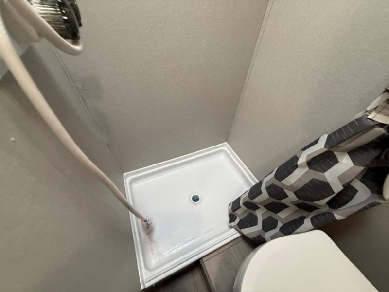 Lightweight camping is easier than you think with this travel trailer in tow! The front 54" x 74" queen bed will provide a great night's rest each night, while your overnight guest takes the booth dinette. There is a handy shelf above the front bed for your belongings plus additional bedroom storage. A private bath includes a 24" x 32" shower and a toilet with a mirror behind it so you can freshen up each day. You'll also find a two burner cooktop and microwave oven to make meals each day plus a 3.3 cu. ft. 12V refrigerator for food storage!