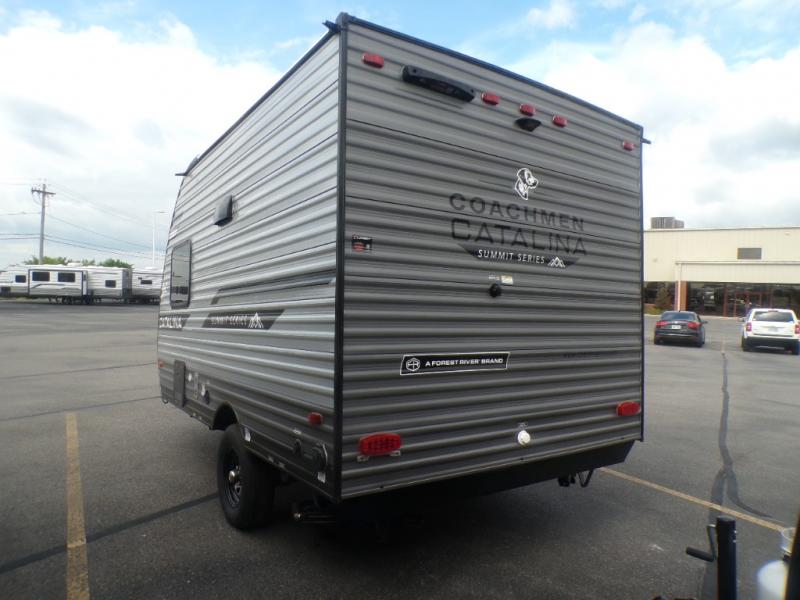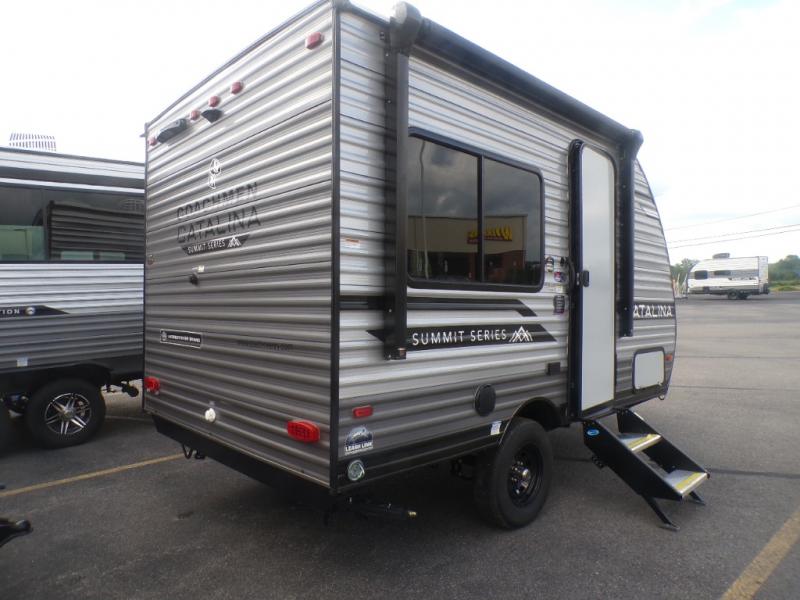 With any Catalina Summit Series 7' by Coachmen RV, you can create an easier adventure with the versatility and simplicity of the shorter lengths and lighter weights! Each includes a premium exterior graphics package, a smooth HD aluminum radius front, and EZ lube axles with leaf spring suspension. The exterior offers a heavy duty standard tongue jack, a diamond plate rock guard to protect against road debris, exterior RG-6 coax cabling and satellite prep, rear view camera prep, and flush mount baggage doors with radius corners for your outdoor gear. Inside, you will enjoy a premium JBL interior speaker, USB charging ports, seamless Thermofoil countertops throughout, a deep basin farm style sink for easy cleanup, and GE kitchen appliances. It's time to choose an affordable and maneuverable single axle trailer today!