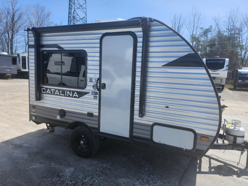 With any Catalina Summit Series 7' by Coachmen RV, you can create an easier adventure with the versatility and simplicity of the shorter lengths and lighter weights! Each includes a premium exterior graphics package, a smooth HD aluminum radius front, and EZ lube axles with leaf spring suspension. The exterior offers a heavy duty standard tongue jack, a diamond plate rock guard to protect against road debris, exterior RG-6 coax cabling and satellite prep, rear view camera prep, and flush mount baggage doors with radius corners for your outdoor gear. Inside, you will enjoy a premium JBL interior speaker, USB charging ports, seamless Thermofoil countertops throughout, a deep basin farm style sink for easy cleanup, and GE kitchen appliances. It's time to choose an affordable and maneuverable single axle trailer today!