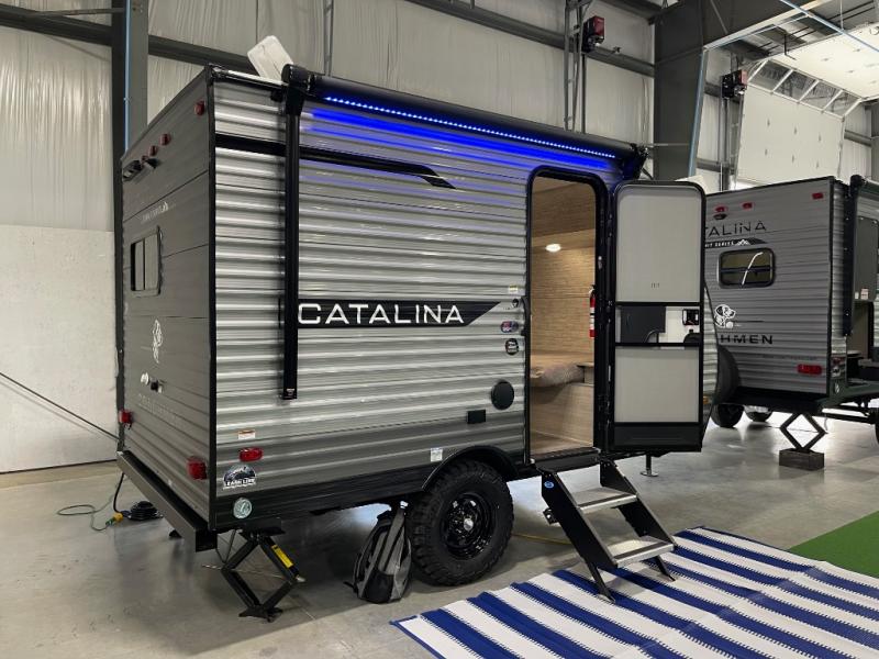 With any Catalina Summit Series 7' by Coachmen RV, you can create an easier adventure with the versatility and simplicity of the shorter lengths and lighter weights! Each includes a premium exterior graphics package, a smooth HD aluminum radius front, and EZ lube axles with leaf spring suspension. The exterior offers a heavy duty standard tongue jack, a diamond plate rock guard to protect against road debris, exterior RG-6 coax cabling and satellite prep, rear view camera prep, and flush mount baggage doors with radius corners for your outdoor gear. Inside, you will enjoy a premium JBL interior speaker, USB charging ports, seamless Thermofoil countertops throughout, a deep basin farm style sink for easy cleanup, and GE kitchen appliances. It's time to choose an affordable and maneuverable single axle trailer today!