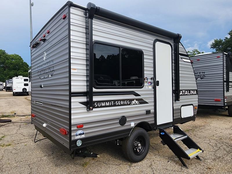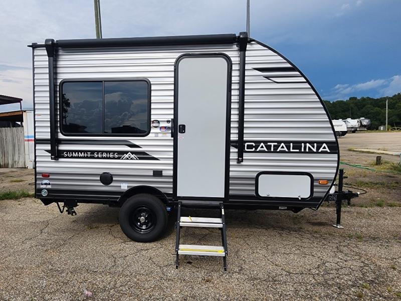 With any Catalina Summit Series 7' by Coachmen RV, you can create an easier adventure with the versatility and simplicity of the shorter lengths and lighter weights! Each includes a premium exterior graphics package, a smooth HD aluminum radius front, and EZ lube axles with leaf spring suspension. The exterior offers a heavy duty standard tongue jack, a diamond plate rock guard to protect against road debris, exterior RG-6 coax cabling and satellite prep, rear view camera prep, and flush mount baggage doors with radius corners for your outdoor gear. Inside, you will enjoy a premium JBL interior speaker, USB charging ports, seamless Thermofoil countertops throughout, a deep basin farm style sink for easy cleanup, and GE kitchen appliances. It's time to choose an affordable and maneuverable single axle trailer today!