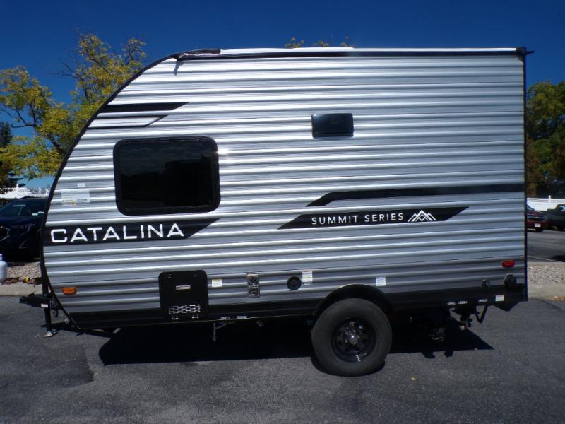 With any Catalina Summit Series 7' by Coachmen RV, you can create an easier adventure with the versatility and simplicity of the shorter lengths and lighter weights! Each includes a premium exterior graphics package, a smooth HD aluminum radius front, and EZ lube axles with leaf spring suspension. The exterior offers a heavy duty standard tongue jack, a diamond plate rock guard to protect against road debris, exterior RG-6 coax cabling and satellite prep, rear view camera prep, and flush mount baggage doors with radius corners for your outdoor gear. Inside, you will enjoy a premium JBL interior speaker, USB charging ports, seamless Thermofoil countertops throughout, a deep basin farm style sink for easy cleanup, and GE kitchen appliances. It's time to choose an affordable and maneuverable single axle trailer today!