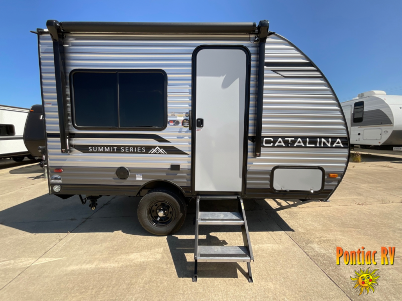 With any Catalina Summit Series 7' by Coachmen RV, you can create an easier adventure with the versatility and simplicity of the shorter lengths and lighter weights! Each includes a premium exterior graphics package, a smooth HD aluminum radius front, and EZ lube axles with leaf spring suspension. The exterior offers a heavy duty standard tongue jack, a diamond plate rock guard to protect against road debris, exterior RG-6 coax cabling and satellite prep, rear view camera prep, and flush mount baggage doors with radius corners for your outdoor gear. Inside, you will enjoy a premium JBL interior speaker, USB charging ports, seamless Thermofoil countertops throughout, a deep basin farm style sink for easy cleanup, and GE kitchen appliances. It's time to choose an affordable and maneuverable single axle trailer today!