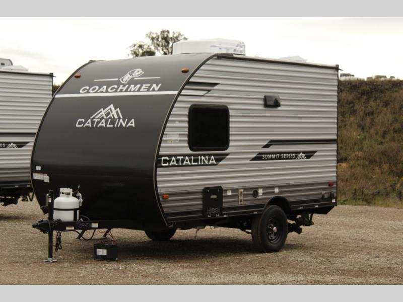 With any Catalina Summit Series 7' by Coachmen RV, you can create an easier adventure with the versatility and simplicity of the shorter lengths and lighter weights! Each includes a premium exterior graphics package, a smooth HD aluminum radius front, and EZ lube axles with leaf spring suspension. The exterior offers a heavy duty standard tongue jack, a diamond plate rock guard to protect against road debris, exterior RG-6 coax cabling and satellite prep, rear view camera prep, and flush mount baggage doors with radius corners for your outdoor gear. Inside, you will enjoy a premium JBL interior speaker, USB charging ports, seamless Thermofoil countertops throughout, a deep basin farm style sink for easy cleanup, and GE kitchen appliances. It's time to choose an affordable and maneuverable single axle trailer today!