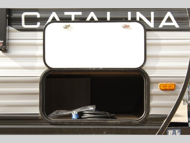 With any Catalina Summit Series 7' by Coachmen RV, you can create an easier adventure with the versatility and simplicity of the shorter lengths and lighter weights! Each includes a premium exterior graphics package, a smooth HD aluminum radius front, and EZ lube axles with leaf spring suspension. The exterior offers a heavy duty standard tongue jack, a diamond plate rock guard to protect against road debris, exterior RG-6 coax cabling and satellite prep, rear view camera prep, and flush mount baggage doors with radius corners for your outdoor gear. Inside, you will enjoy a premium JBL interior speaker, USB charging ports, seamless Thermofoil countertops throughout, a deep basin farm style sink for easy cleanup, and GE kitchen appliances. It's time to choose an affordable and maneuverable single axle trailer today!