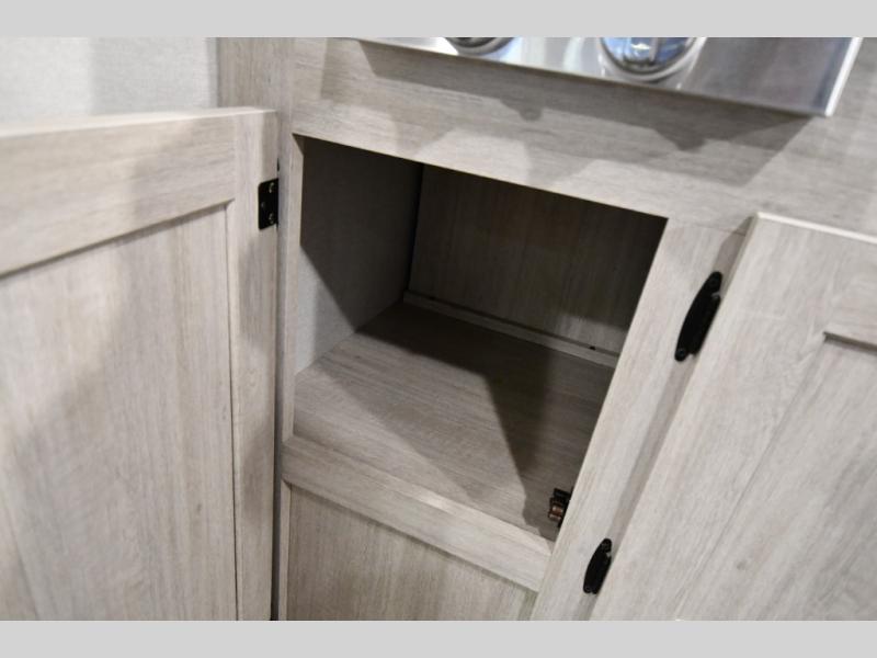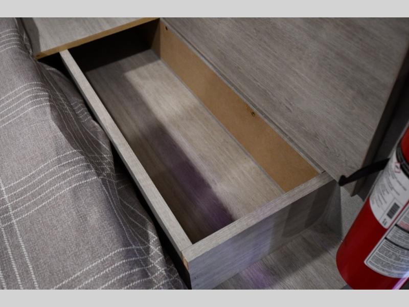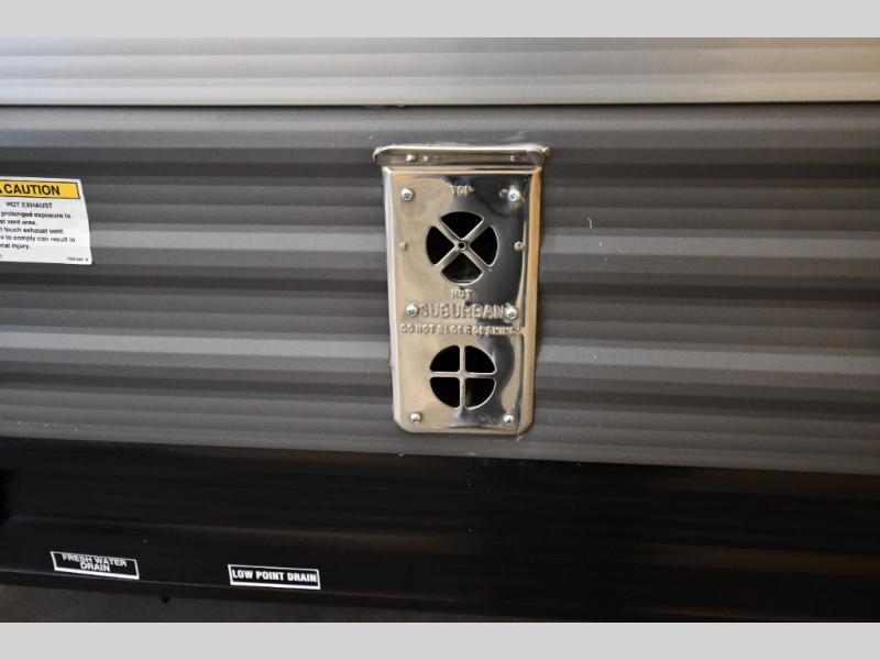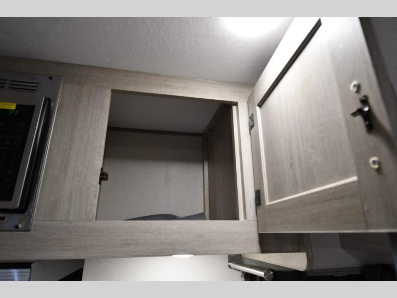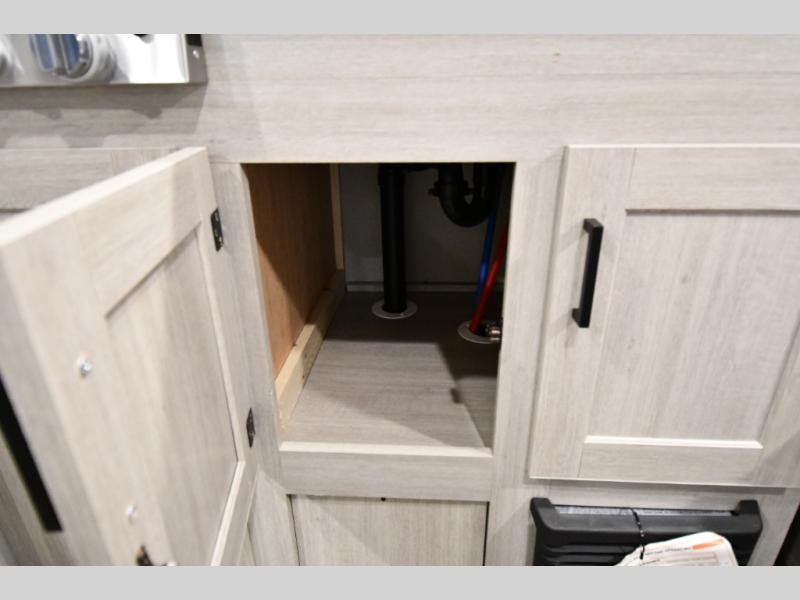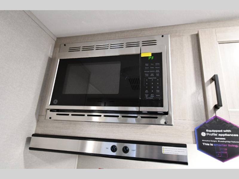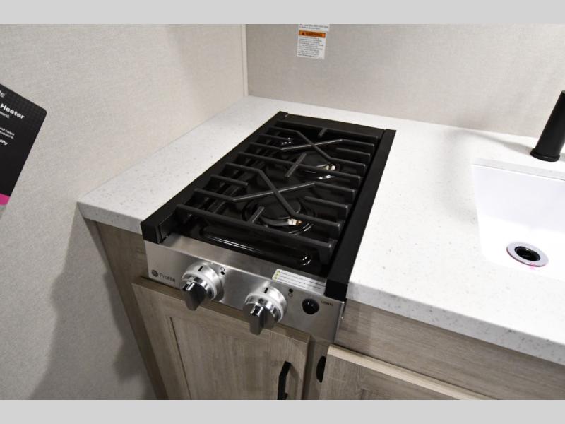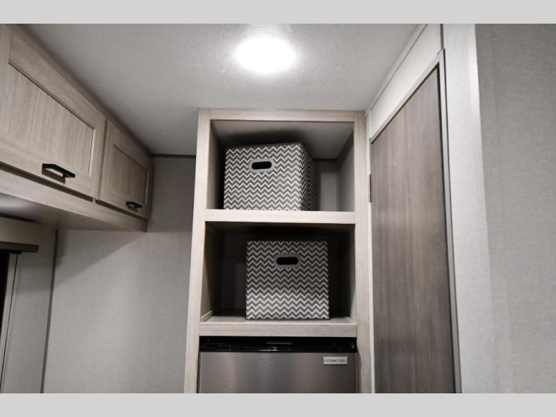 Lightweight camping is easier than you think with this travel trailer in tow! The front 54" x 74" bed will provide a great night's rest each night, while your overnight guest takes the booth dinette. There is a handy shelf above the front bed for your belongings plus additional bedroom storage. A private bath includes a 24" x 32" shower and a toilet with a mirror behind it so you can freshen up each day. You'll also find a two burner cooktop and microwave oven to make meals each day plus a 3.3 cu. ft. 12V refrigerator for food storage!