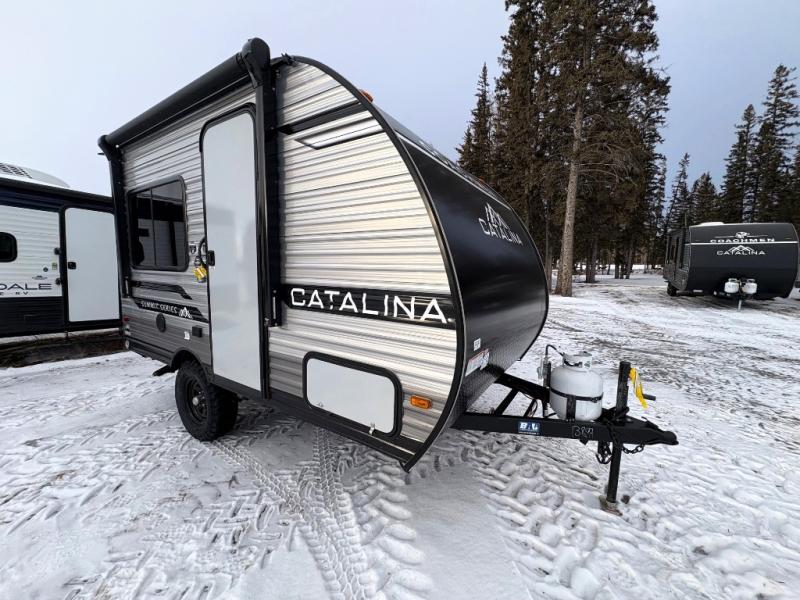 With any Catalina Summit Series 7' by Coachmen RV, you can create an easier adventure with the versatility and simplicity of the shorter lengths and lighter weights! Each includes a premium exterior graphics package, a smooth HD aluminum radius front, and EZ lube axles with leaf spring suspension. The exterior offers a heavy duty standard tongue jack, a diamond plate rock guard to protect against road debris, exterior RG-6 coax cabling and satellite prep, rear view camera prep, and flush mount baggage doors with radius corners for your outdoor gear. Inside, you will enjoy a premium JBL interior speaker, USB charging ports, seamless Thermofoil countertops throughout, a deep basin farm style sink for easy cleanup, and GE kitchen appliances. It's time to choose an affordable and maneuverable single axle trailer today!