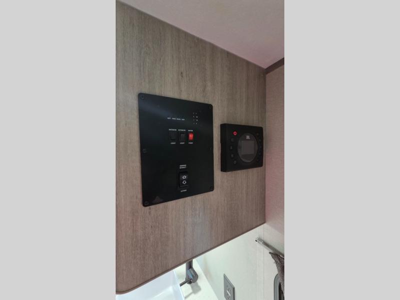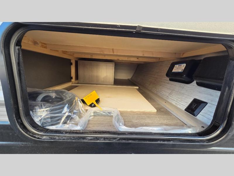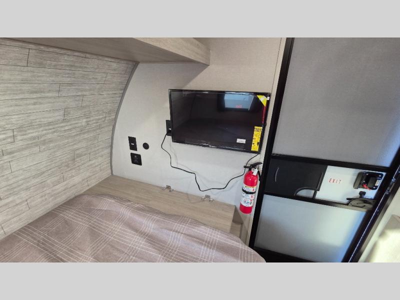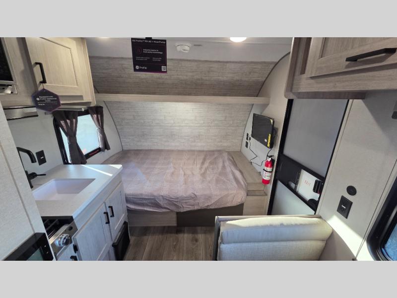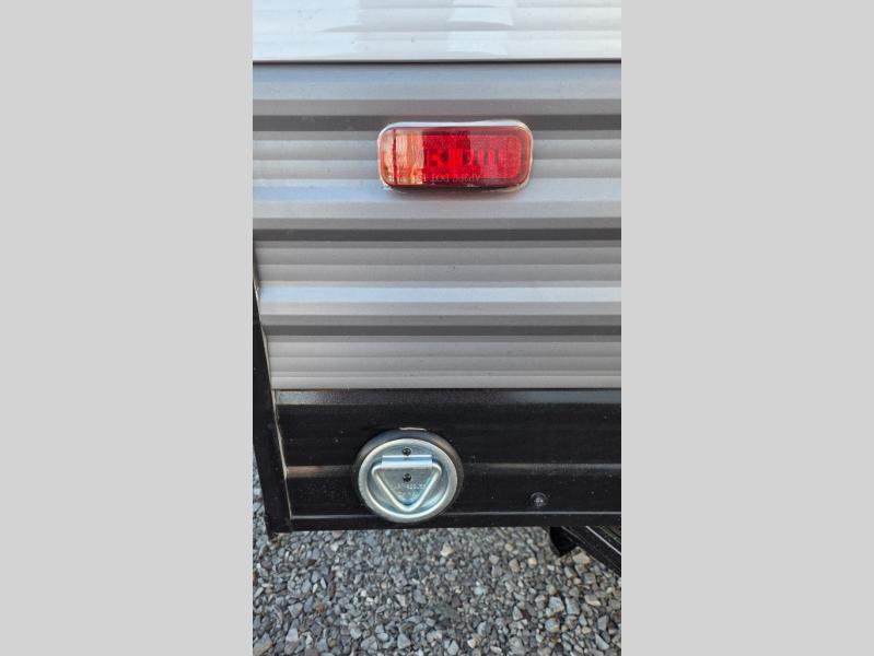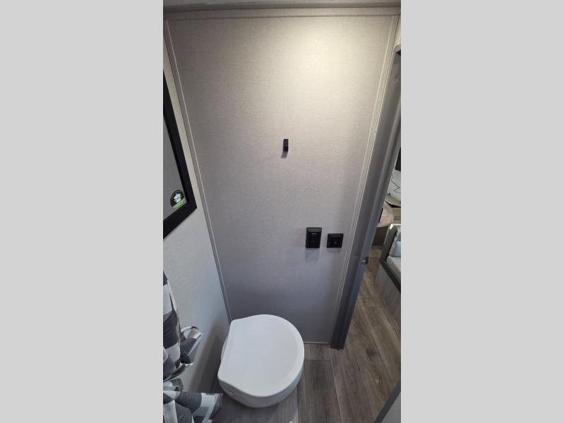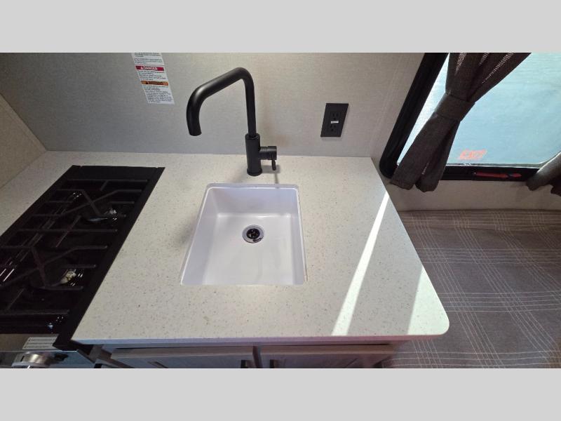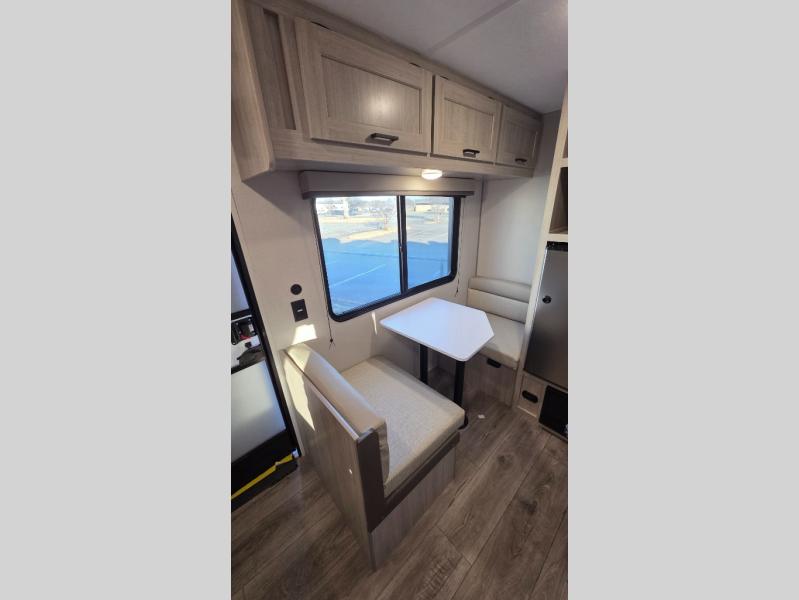 Lightweight camping is easier than you think with this travel trailer in tow! The front 54" x 74" bed will provide a great night's rest each night, while your overnight guest takes the booth dinette. There is a handy shelf above the front bed for your belongings plus additional bedroom storage. A private bath includes a 24" x 32" shower and a toilet with a mirror behind it so you can freshen up each day. You'll also find a two burner cooktop and microwave oven to make meals each day plus a 3.3 cu. ft. 12V refrigerator for food storage!
