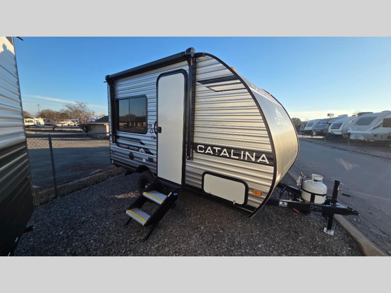With any Catalina Summit Series 7' by Coachmen RV, you can create an easier adventure with the versatility and simplicity of the shorter lengths and lighter weights! Each includes a premium exterior graphics package, a smooth HD aluminum radius front, and EZ lube axles with leaf spring suspension. The exterior offers a heavy duty standard tongue jack, a diamond plate rock guard to protect against road debris, exterior RG-6 coax cabling and satellite prep, rear view camera prep, and flush mount baggage doors with radius corners for your outdoor gear. Inside, you will enjoy a premium JBL interior speaker, USB charging ports, seamless Thermofoil countertops throughout, a deep basin farm style sink for easy cleanup, and GE kitchen appliances. It's time to choose an affordable and maneuverable single axle trailer today!