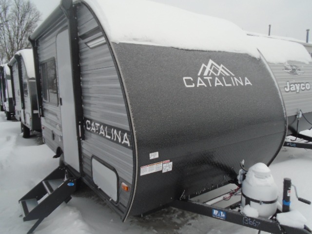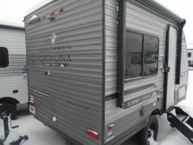 With any Catalina Summit Series 7' by Coachmen RV, you can create an easier adventure with the versatility and simplicity of the shorter lengths and lighter weights! Each includes a premium exterior graphics package, a smooth HD aluminum radius front, and EZ lube axles with leaf spring suspension. The exterior offers a heavy duty standard tongue jack, a diamond plate rock guard to protect against road debris, exterior RG-6 coax cabling and satellite prep, rear view camera prep, and flush mount baggage doors with radius corners for your outdoor gear. Inside, you will enjoy a premium JBL interior speaker, USB charging ports, seamless Thermofoil countertops throughout, a deep basin farm style sink for easy cleanup, and GE kitchen appliances. It's time to choose an affordable and maneuverable single axle trailer today!