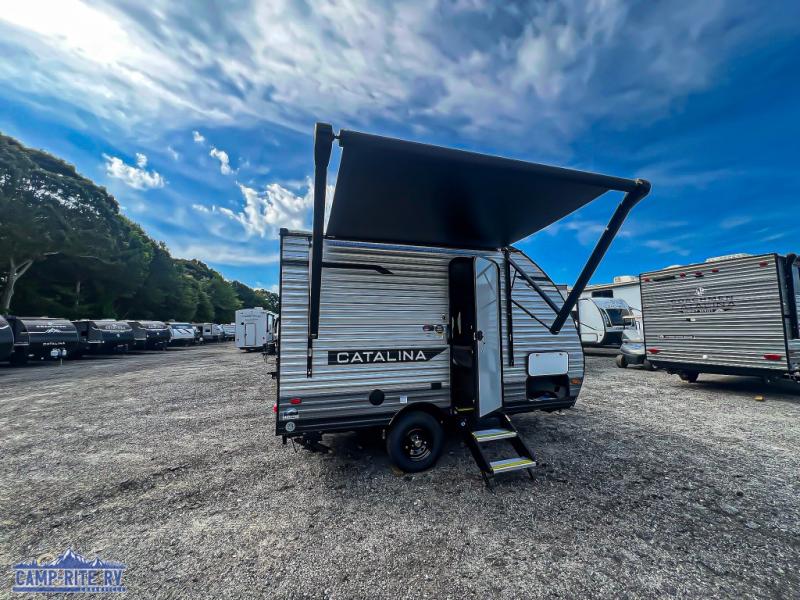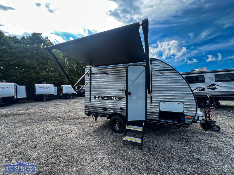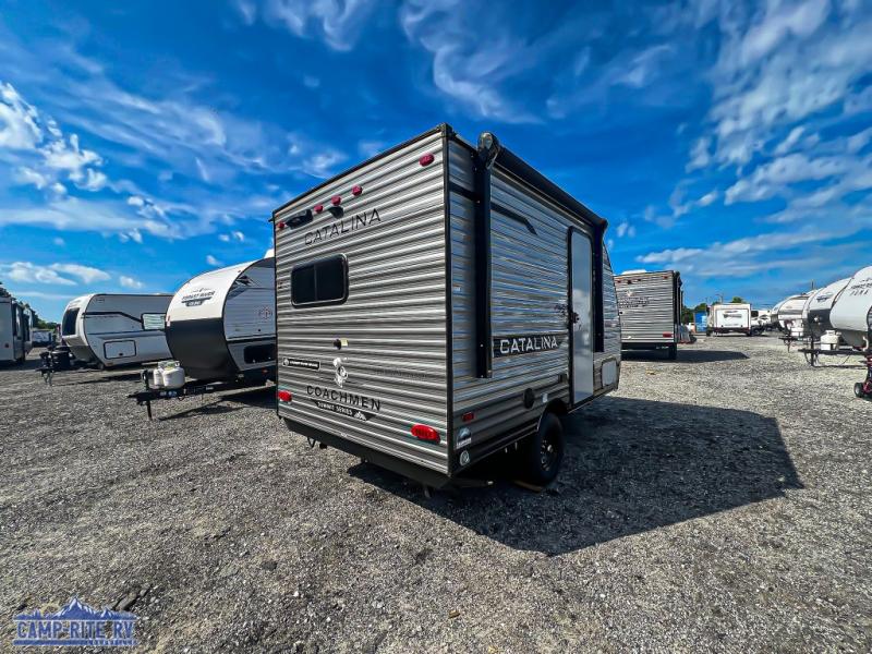 With any Catalina Summit Series 7' by Coachmen RV, you can create an easier adventure with the versatility and simplicity of the shorter lengths and lighter weights! Each includes a premium exterior graphics package, a smooth HD aluminum radius front, and EZ lube axles with leaf spring suspension. The exterior offers a heavy duty standard tongue jack, a diamond plate rock guard to protect against road debris, exterior RG-6 coax cabling and satellite prep, rear view camera prep, and flush mount baggage doors with radius corners for your outdoor gear. Inside, you will enjoy a premium JBL interior speaker, USB charging ports, seamless Thermofoil countertops throughout, a deep basin farm style sink for easy cleanup, and GE kitchen appliances. It's time to choose an affordable and maneuverable single axle trailer today!