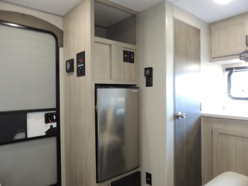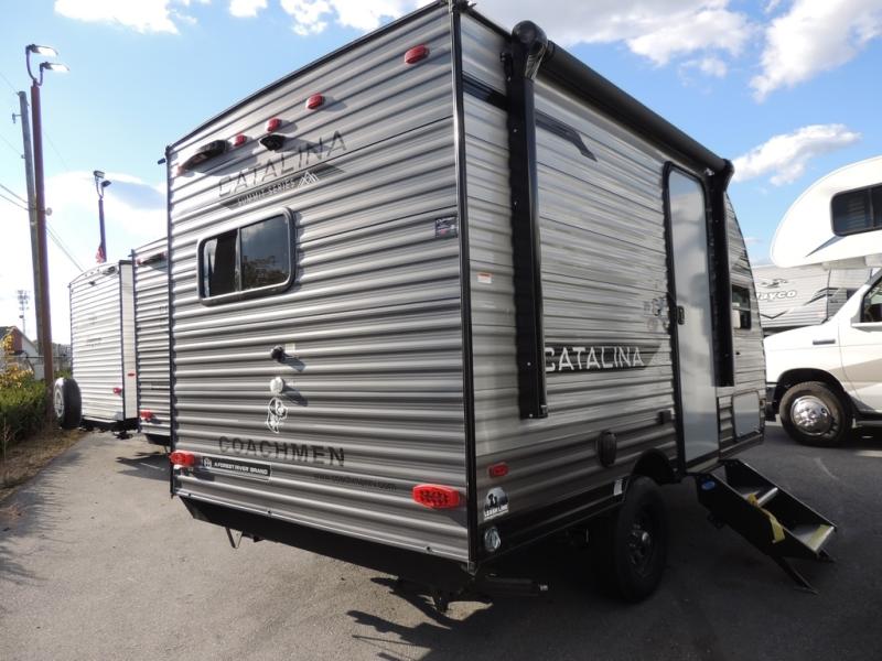 With any Catalina Summit Series 7' by Coachmen RV, you can create an easier adventure with the versatility and simplicity of the shorter lengths and lighter weights! Each includes a premium exterior graphics package, a smooth HD aluminum radius front, and EZ lube axles with leaf spring suspension. The exterior offers a heavy duty standard tongue jack, a diamond plate rock guard to protect against road debris, exterior RG-6 coax cabling and satellite prep, rear view camera prep, and flush mount baggage doors with radius corners for your outdoor gear. Inside, you will enjoy a premium JBL interior speaker, USB charging ports, seamless Thermofoil countertops throughout, a deep basin farm style sink for easy cleanup, and GE kitchen appliances. It's time to choose an affordable and maneuverable single axle trailer today!