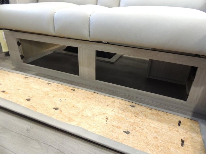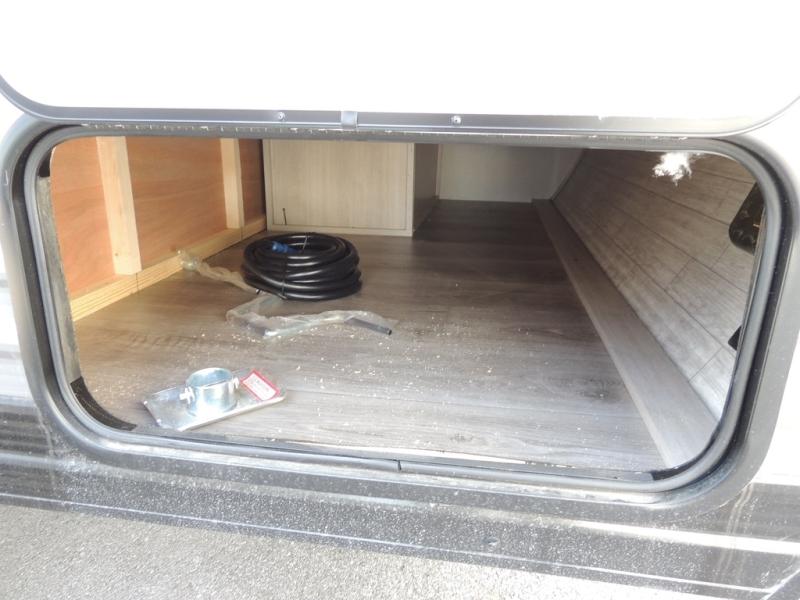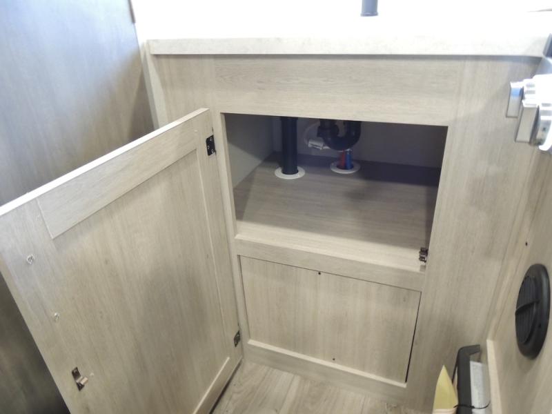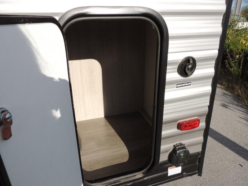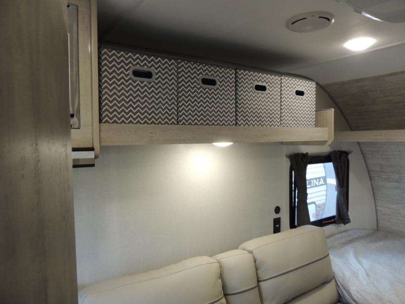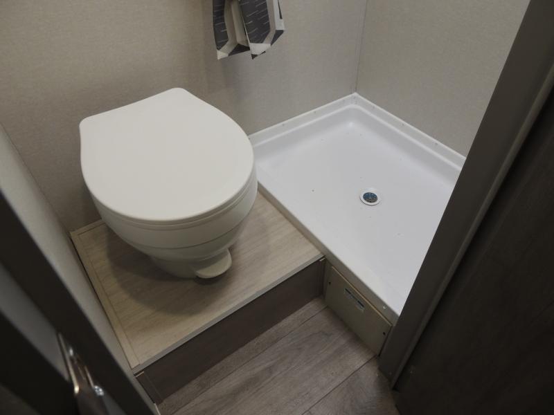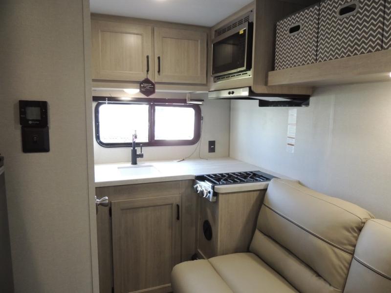 Lightweight camping is easier than you think with this travel trailer in tow! The front 54" x 74" queen bed will provide a great night's rest each night, while your overnight guest takes the 60" Jack knife sofa. There is a handy shelf above the front bed for your belongings plus a shelf with bins over the sofa. A private bath includes a 24" x 32" shower and a toilet with a mirror behind it so you can freshen up each day. You'll also find a two burner cooktop and microwave oven to make meals each day plus a 3.3 cu. ft. 12V refrigerator for food storage!