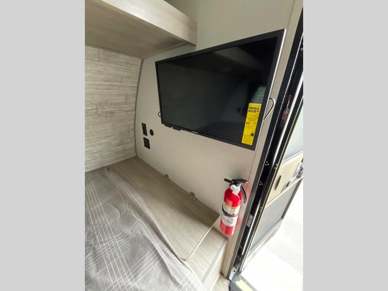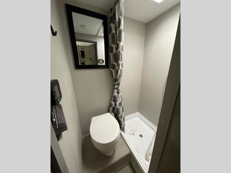 Lightweight camping is easier than you think with this travel trailer in tow! The front 54" x 74" bed will provide a great night's rest each night. There is a handy shelf above the front bed for your belongings plus overhead storage in the kitchen area. A private bath includes a 24" x 32" shower and a toilet with a mirror behind it so you can freshen up each day. You'll also find a two burner cooktop and microwave oven to make meals each day plus a 3.3 cu. ft. 12V refrigerator for food storage!