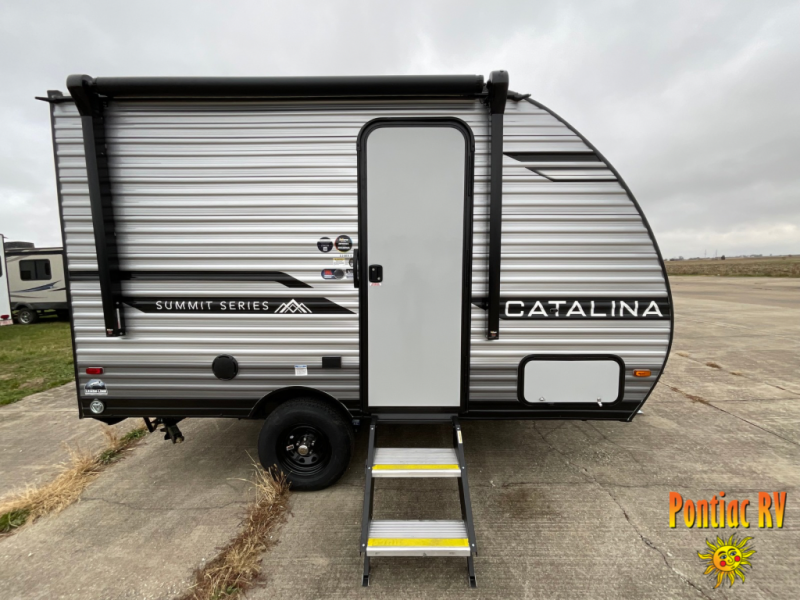 With any Catalina Summit Series 7' by Coachmen RV, you can create an easier adventure with the versatility and simplicity of the shorter lengths and lighter weights! Each includes a premium exterior graphics package, a smooth HD aluminum radius front, and EZ lube axles with leaf spring suspension. The exterior offers a heavy duty standard tongue jack, a diamond plate rock guard to protect against road debris, exterior RG-6 coax cabling and satellite prep, rear view camera prep, and flush mount baggage doors with radius corners for your outdoor gear. Inside, you will enjoy a premium JBL interior speaker, USB charging ports, seamless Thermofoil countertops throughout, a deep basin farm style sink for easy cleanup, and GE kitchen appliances. It's time to choose an affordable and maneuverable single axle trailer today!