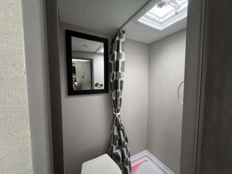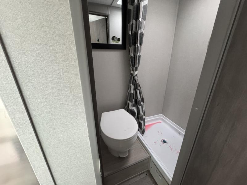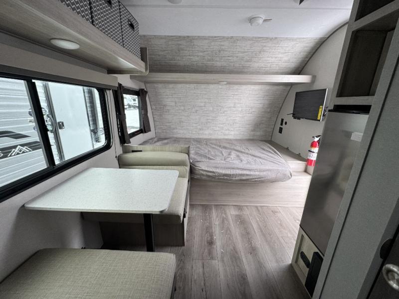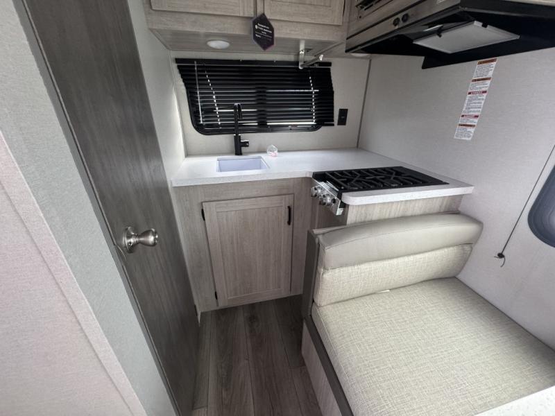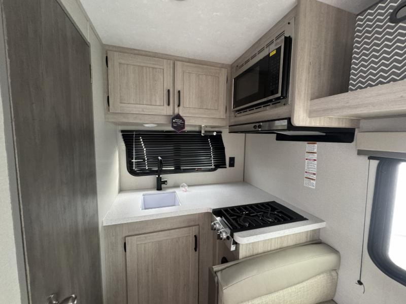 Lightweight camping is easier than you think with this travel trailer in tow! The front 54" x 74" bed will provide a great night's rest each night. There is a handy shelf above the front bed for your belongings plus overhead storage in the kitchen area. A private bath includes a 24" x 32" shower and a toilet with a mirror behind it so you can freshen up each day. You'll also find a two burner cooktop and microwave oven to make meals each day plus a 3.3 cu. ft. 12V refrigerator for food storage!
